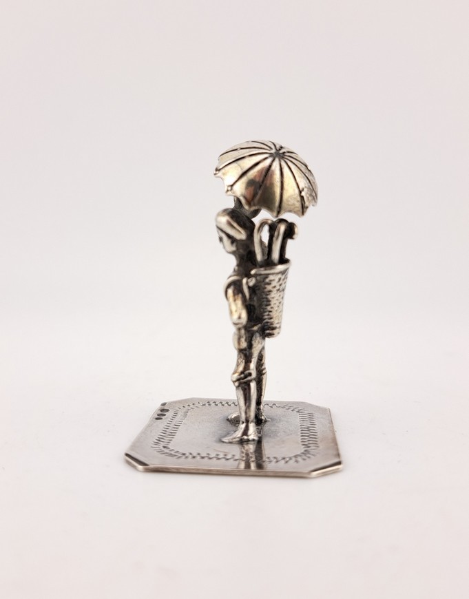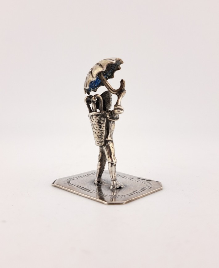 Paraplu verkoper, miniatuur zilver, mt; C.A. Stout, Rotterdam, ca.1970.