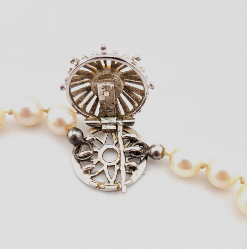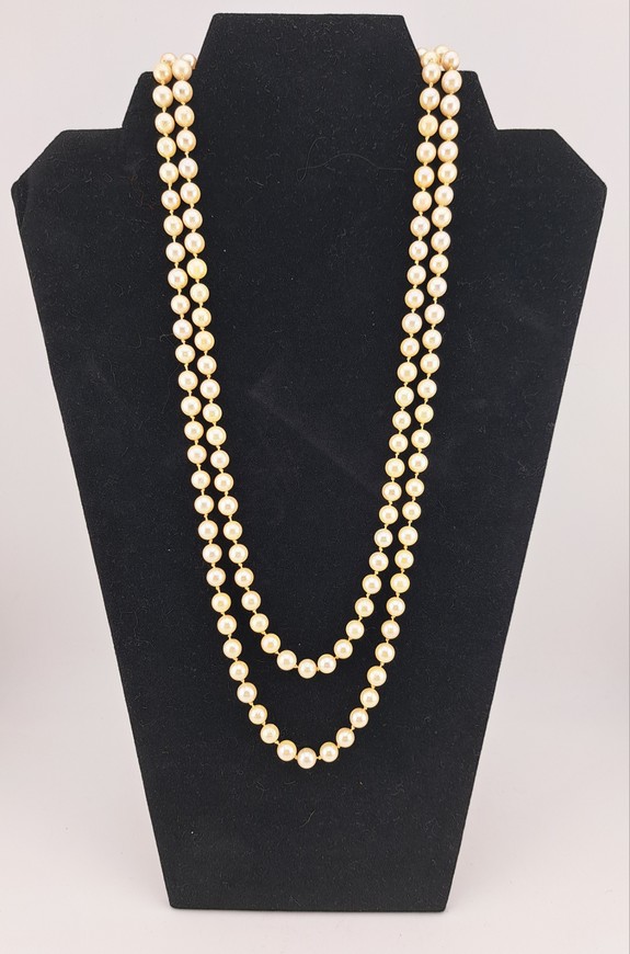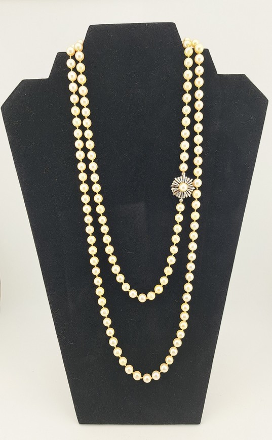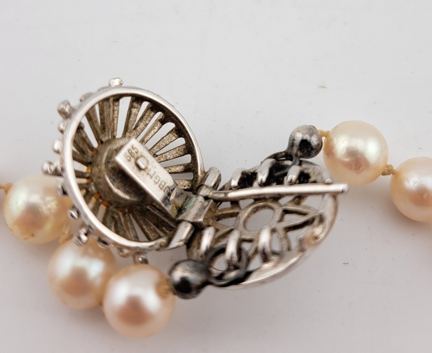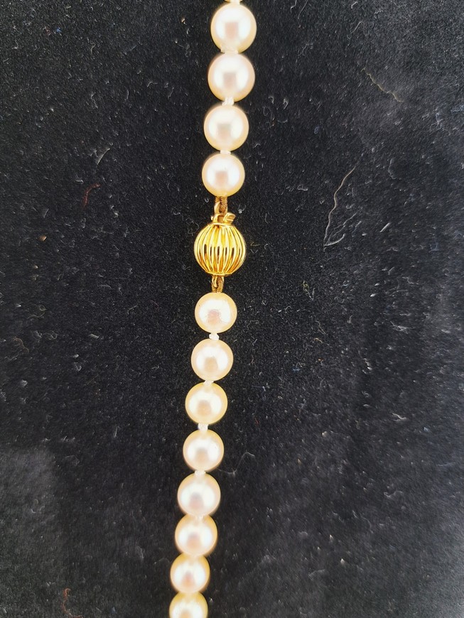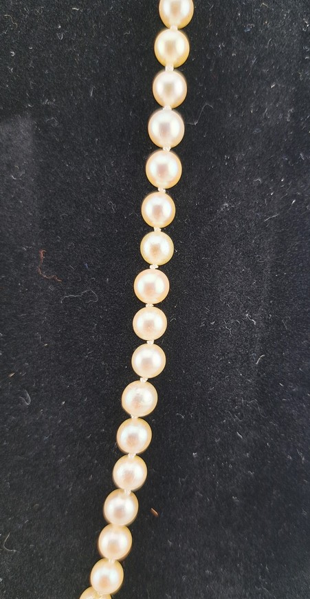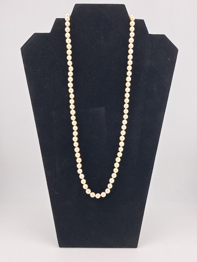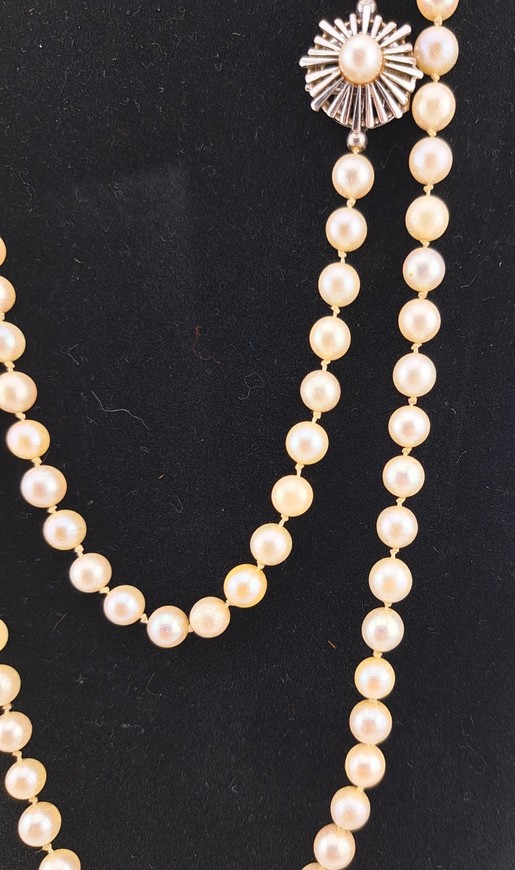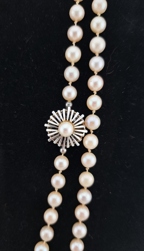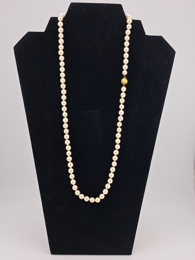 Parelketting, geknoopt, zoetwaterparel, 14k witgouden slot.