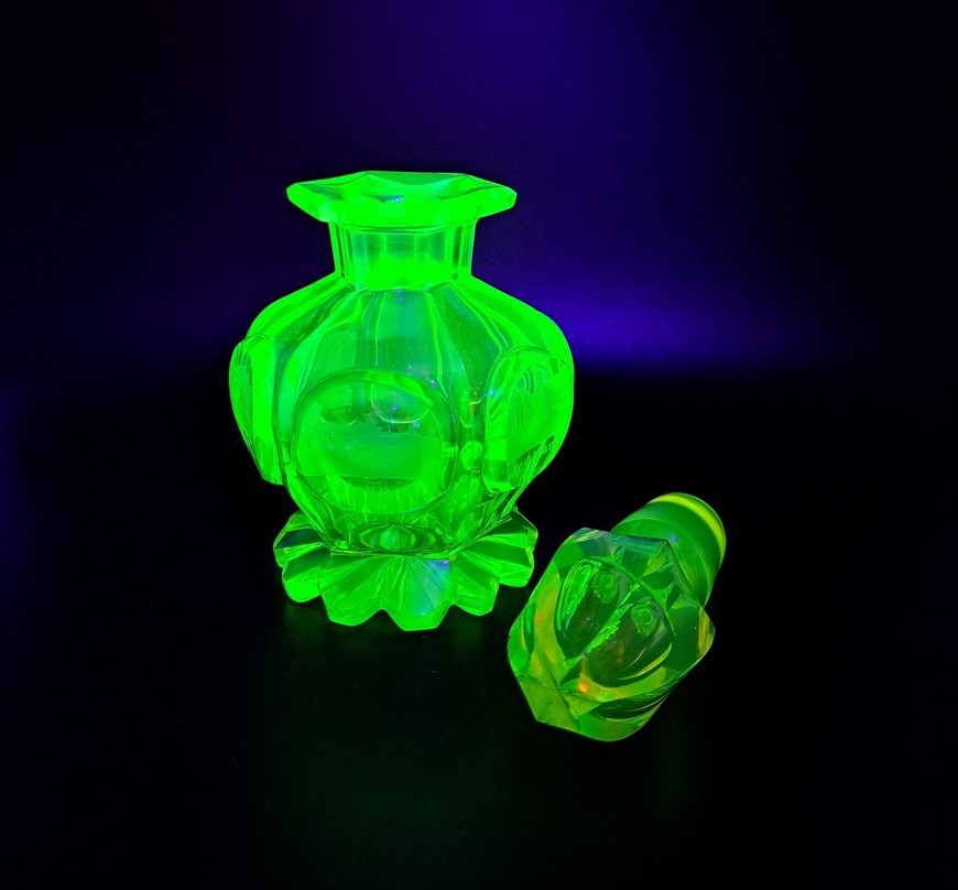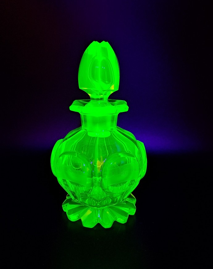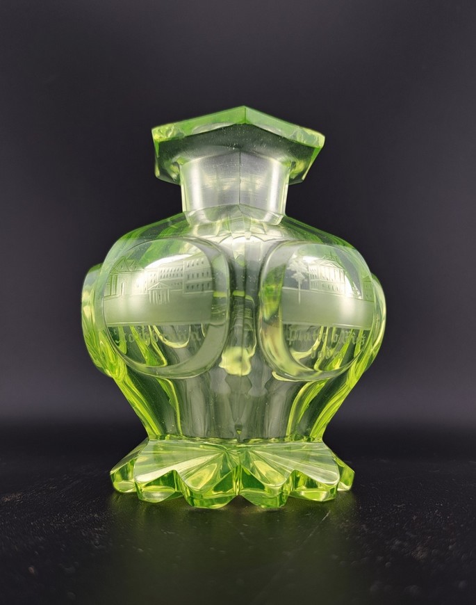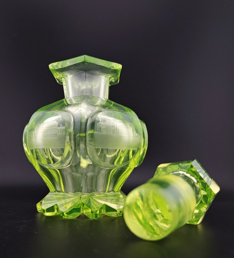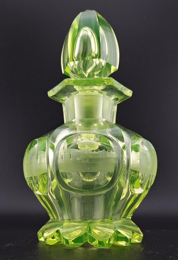 Antieke parfumfles, annagroen met zilveren dop, Frankrijk, ca.1880.