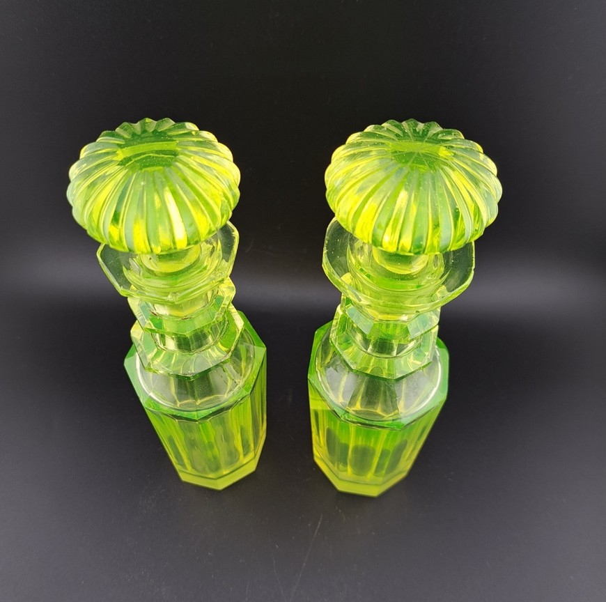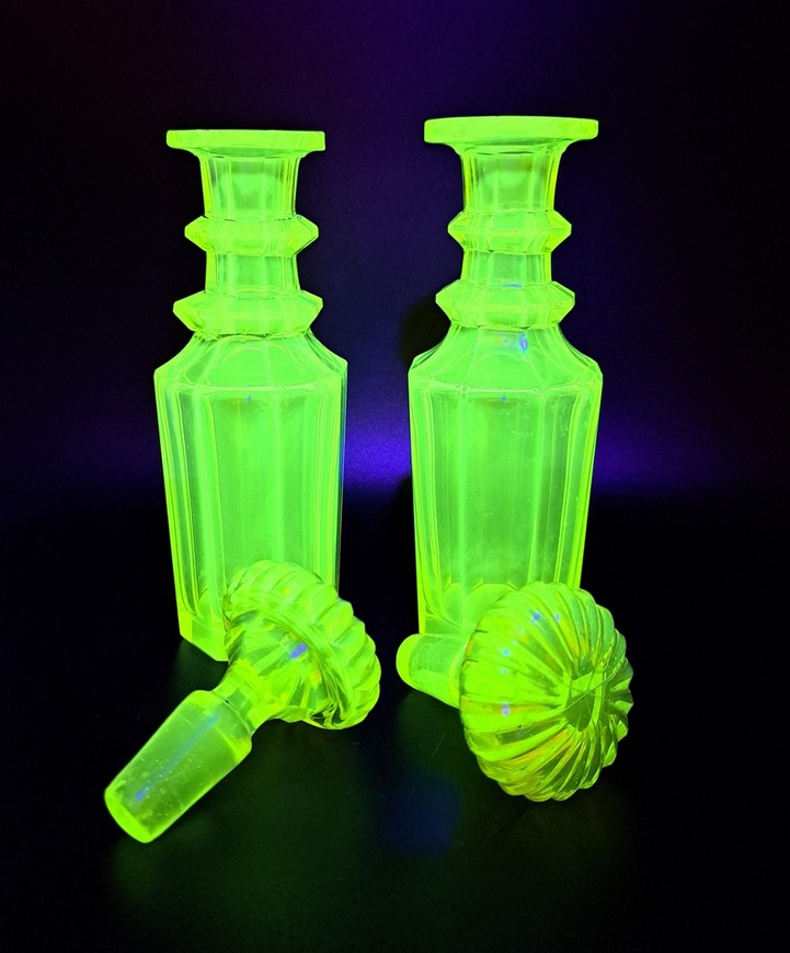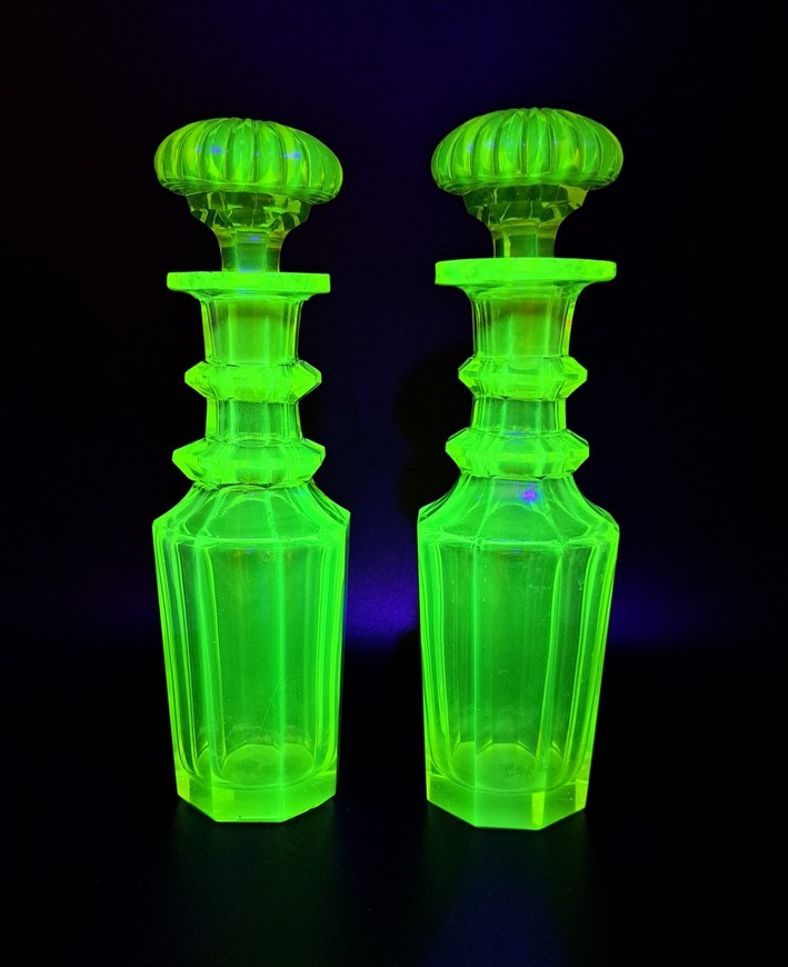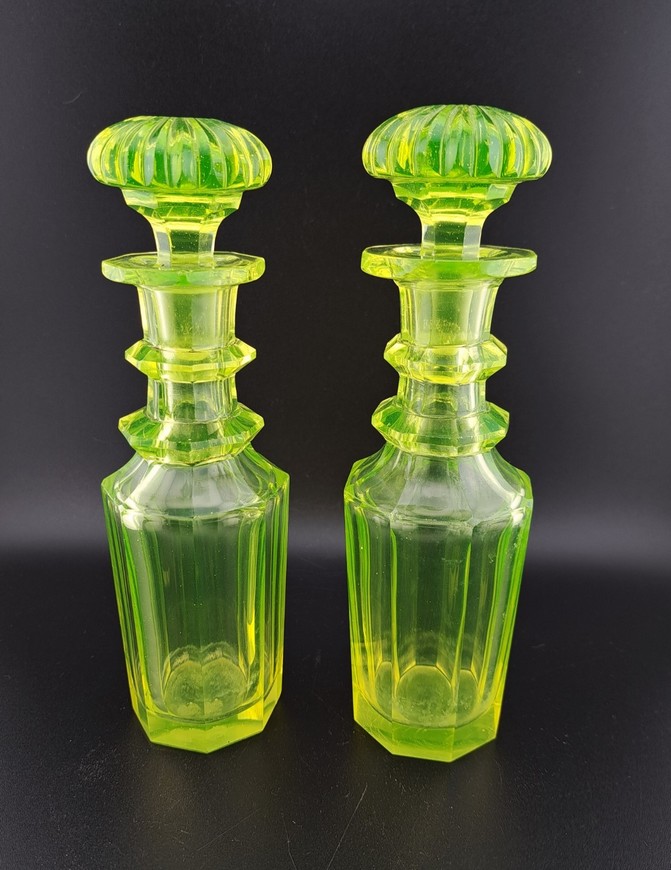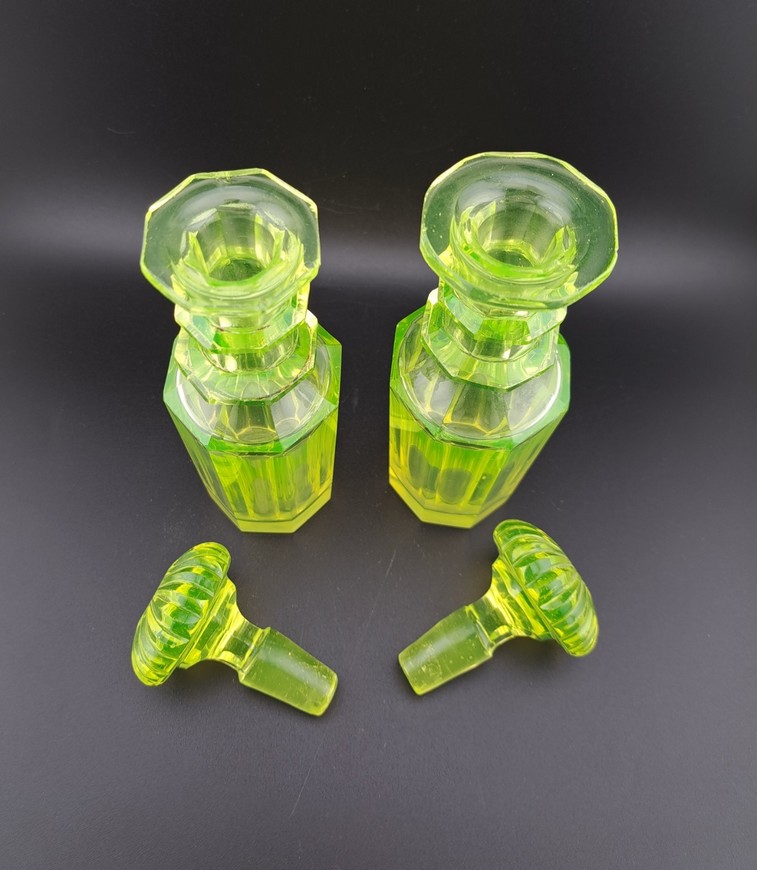 Antieke parfumfles, annagroen met zilveren dop, Frankrijk, ca.1880.