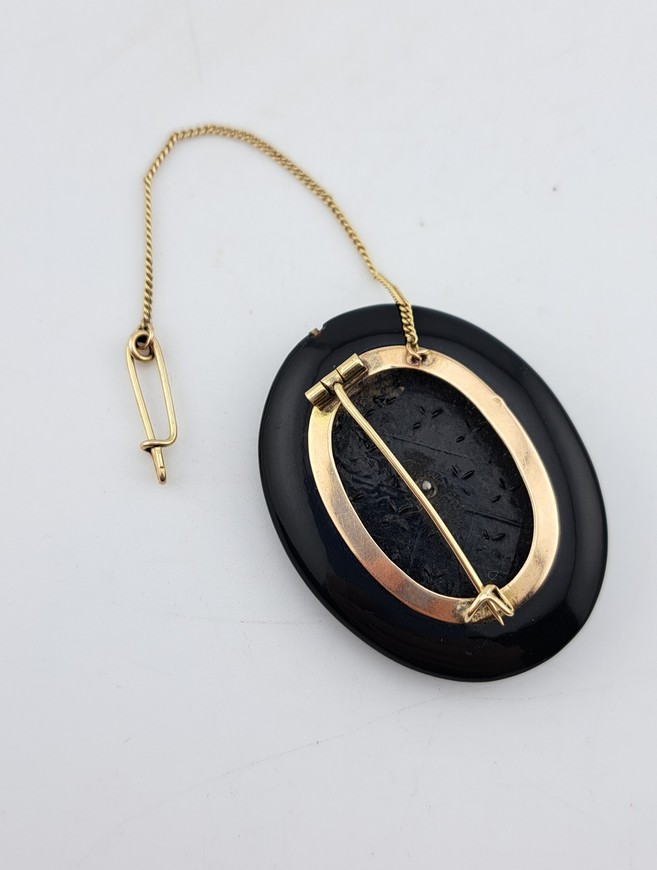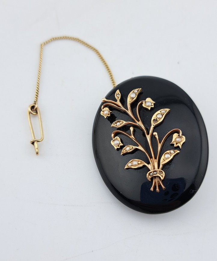 Antieke broche, glas met 14k goud en blisterparels, 19e eeuw.