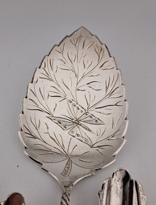 Set met taartschep, theeduimpje en suikerschepje, zilver, P. van Oostrom, Schoonhoven, jaar 1933.