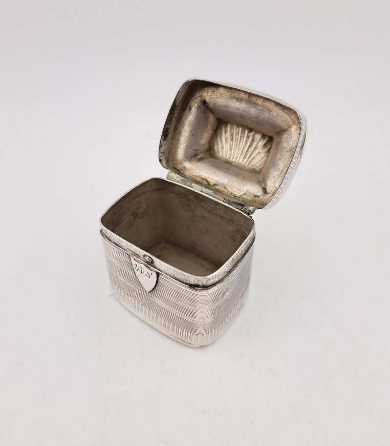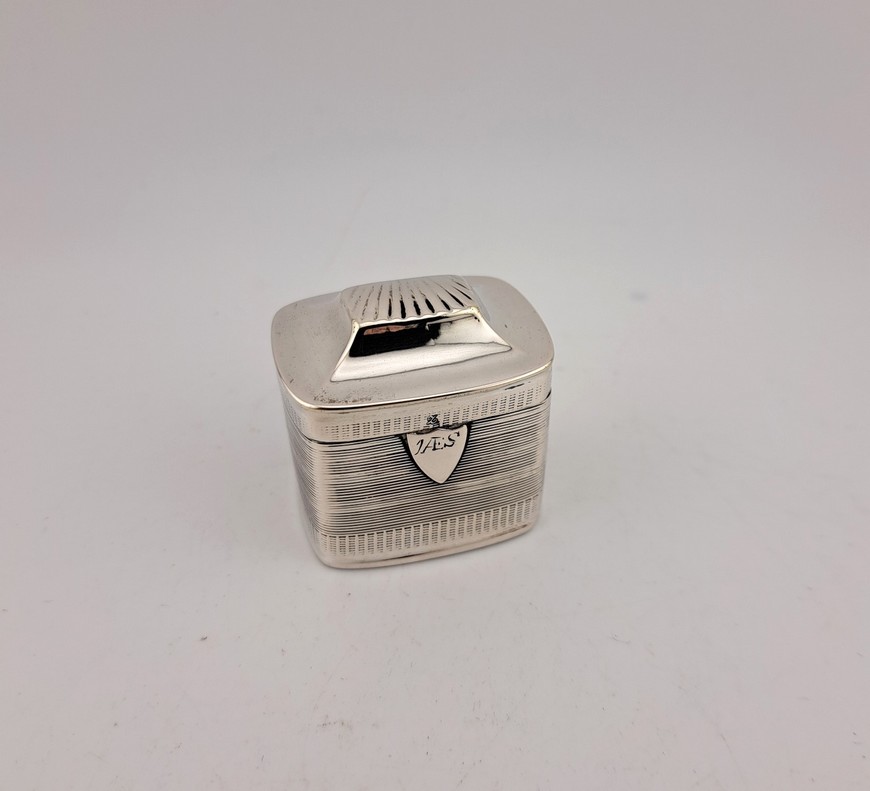Antiek lodereindoosje, zilver, Empire, jaar 1834.