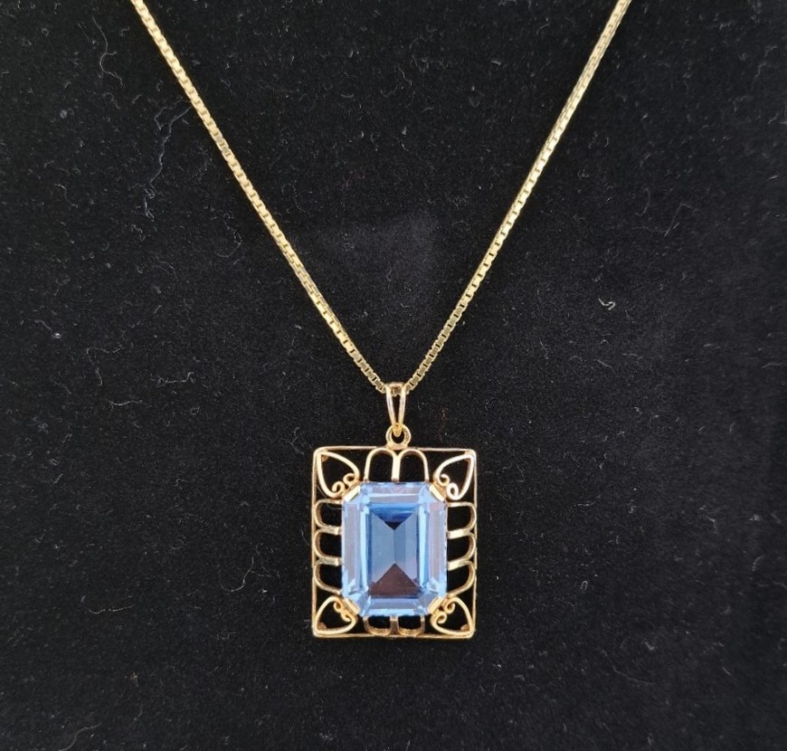 Hanger 14k goud met synthetische aquamarijn.