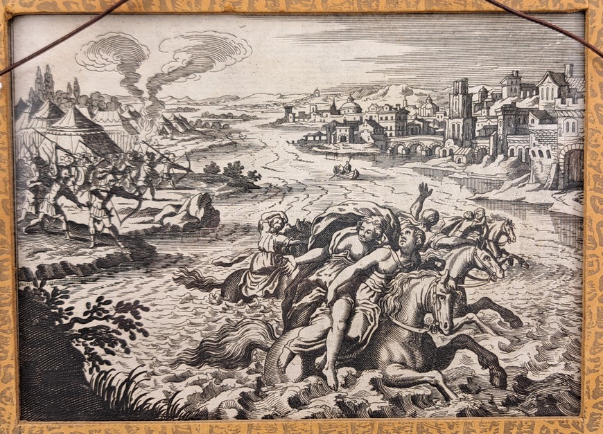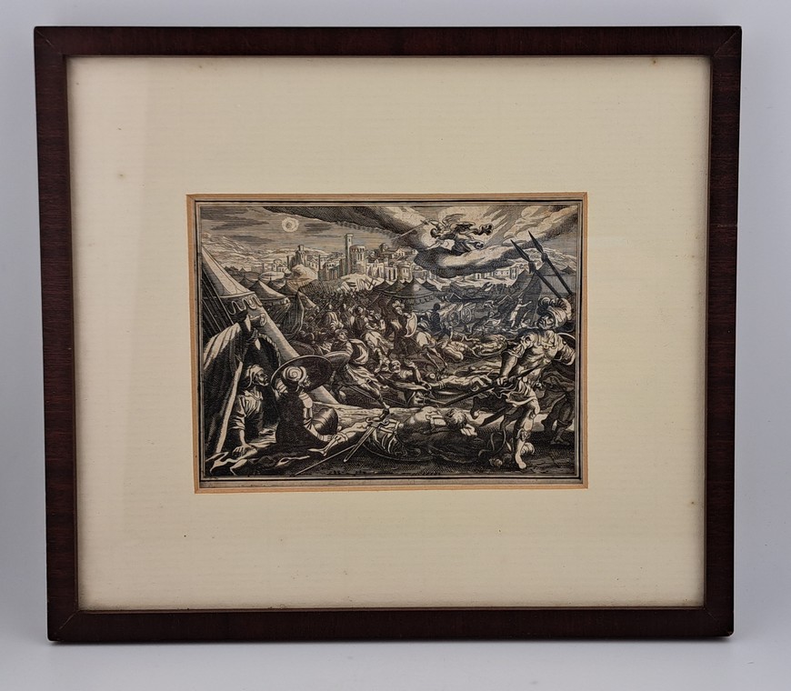 Antieke kopergravure, Jacob van Meurs, Arnhem, 1619-1680. Aan de achterzijde zit nog een 2de kopergravure van Jacob van Meurs.
