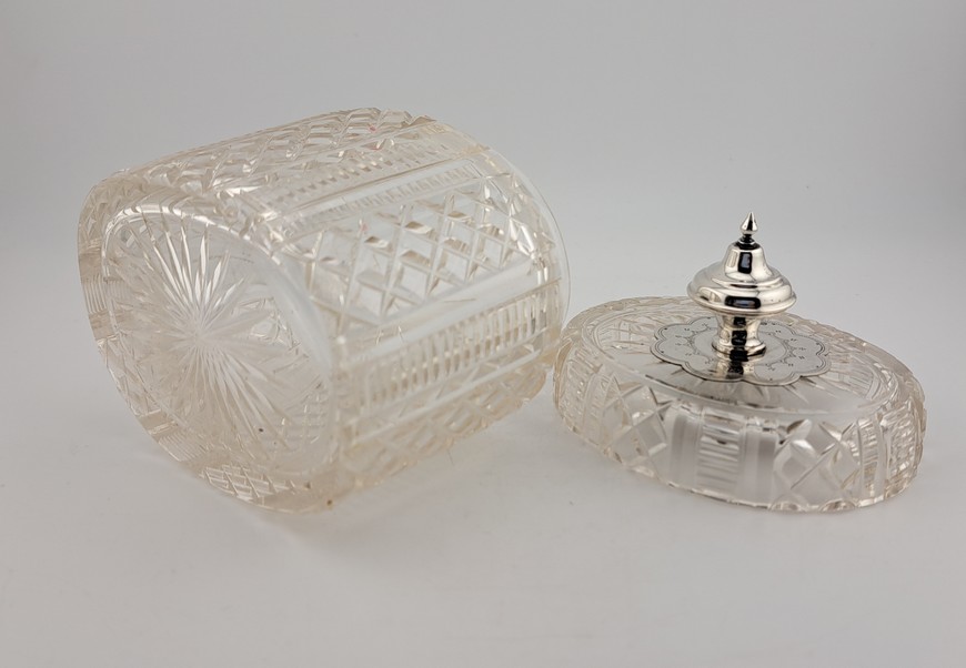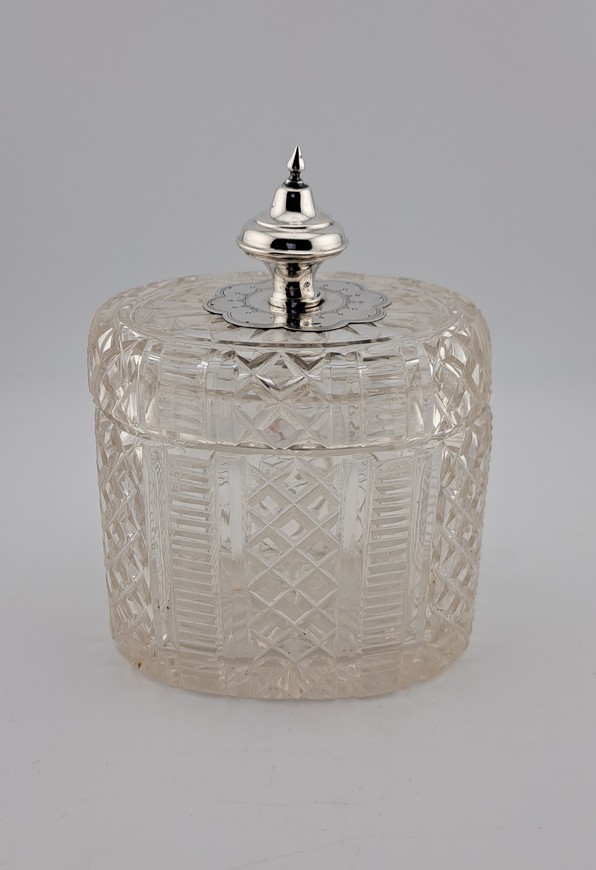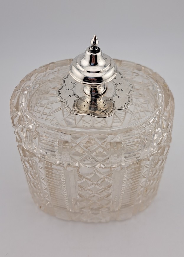Antieke tea caddy, kristal met zilver, Willem Baksteen, Rotterdam, ca.1875.