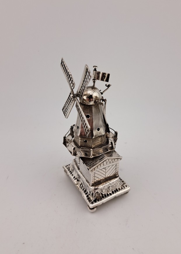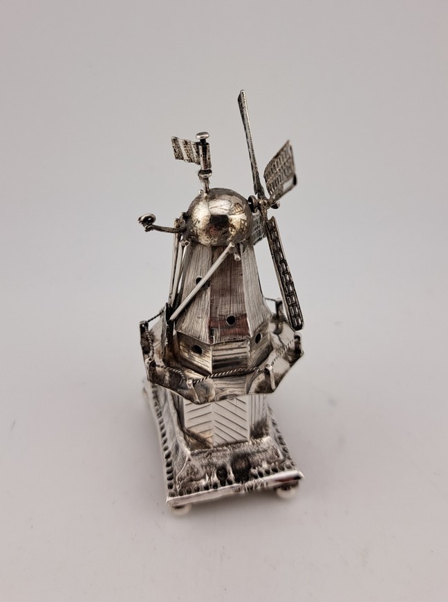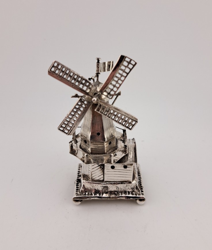 Antieke miniatuur molen, 2e gehalte zilver, J. Verkerk, Schoonhoven, jaar 1923.