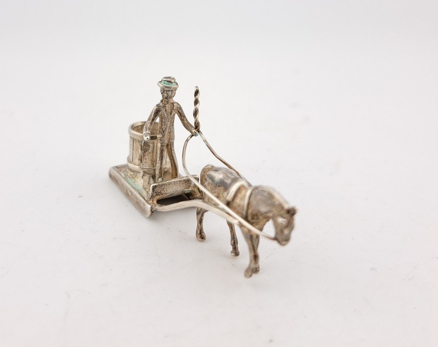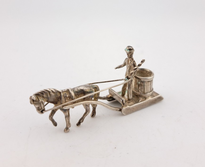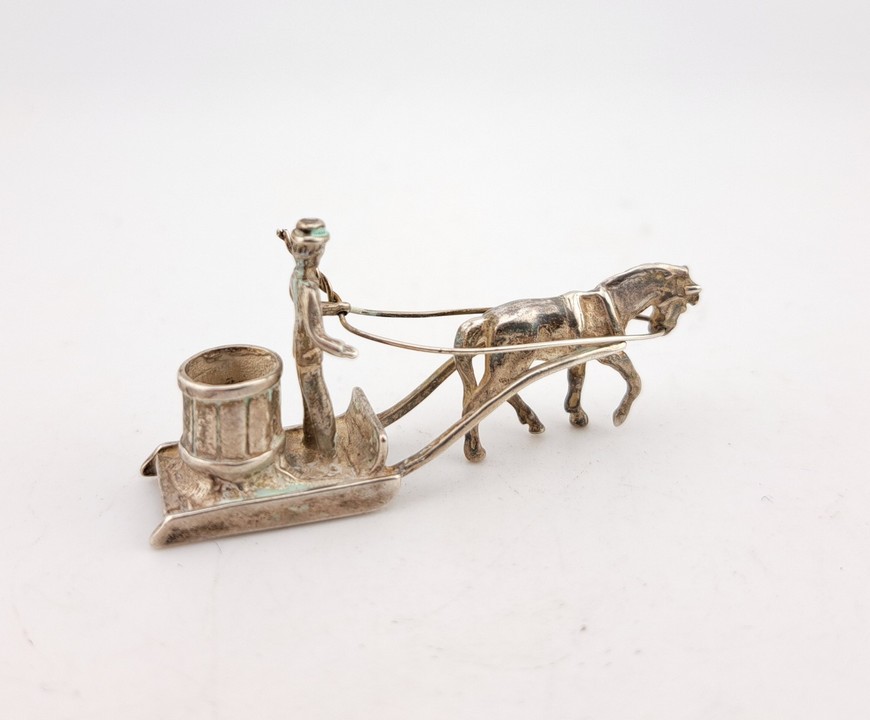Miniatuur paard en slede, 2e gehalte zilver, Hollands, ca.1970.