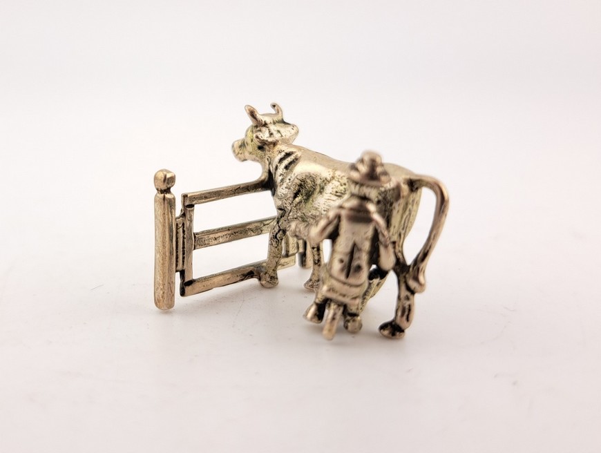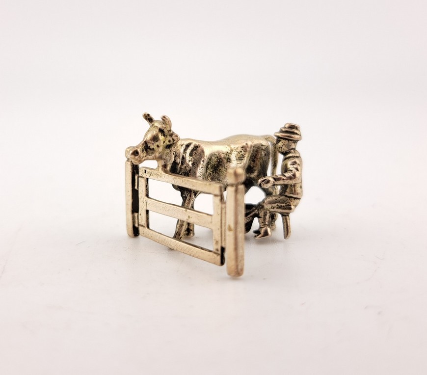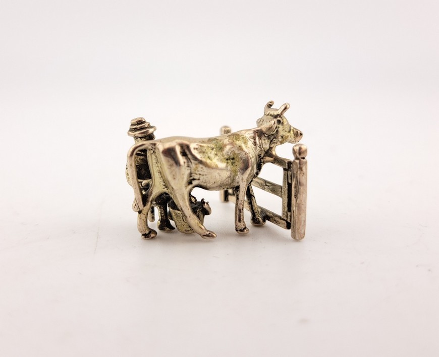 Miniatuur melkende boer, 2e gehalte zilver, Hollands, 20e eeuw.