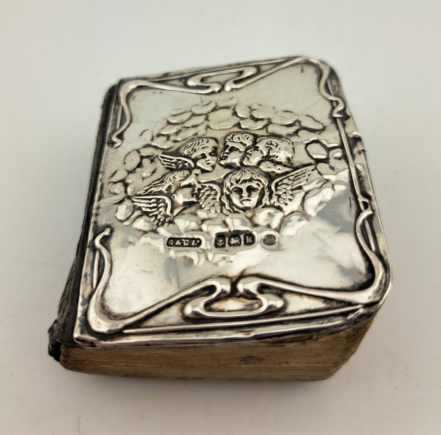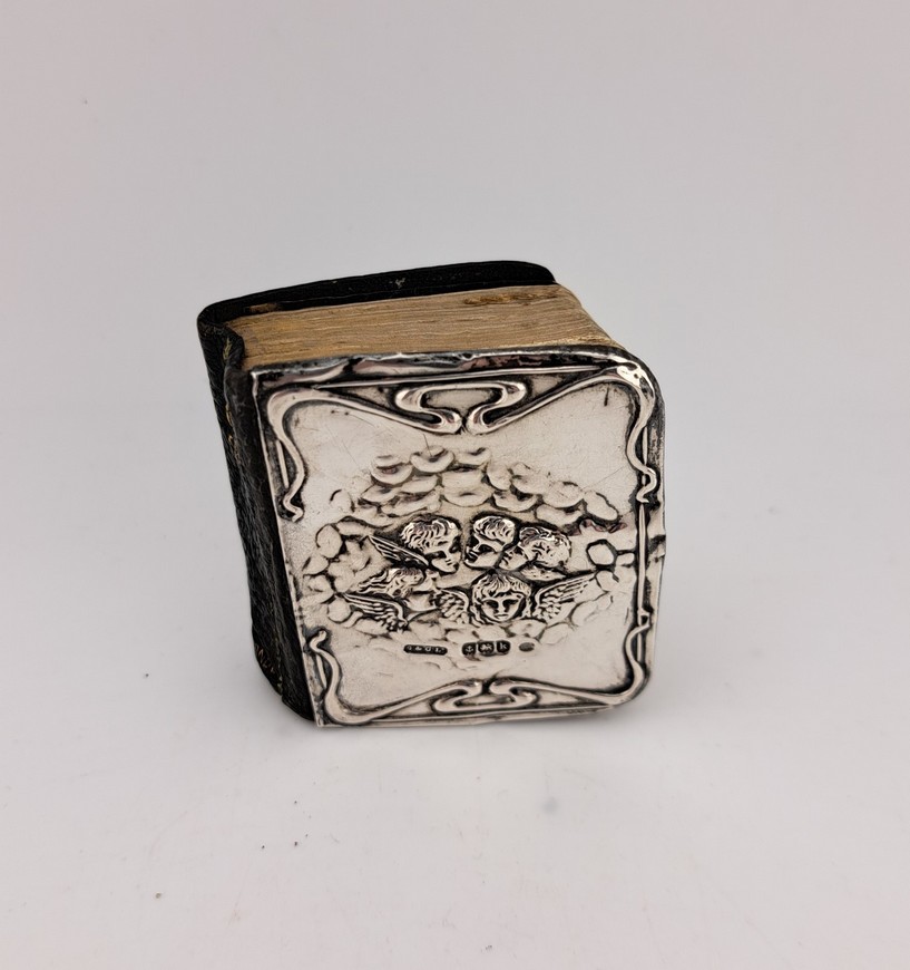 Antiek miniatuur Bijbeltje, zilver, Birmingham, jaar 1909.
