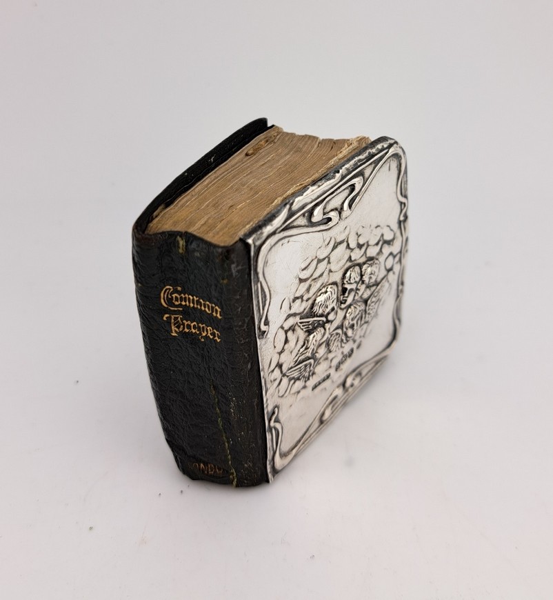 Antiek miniatuur Bijbeltje, zilver, Birmingham, jaar 1909. Zilver is gemaakt door de Firma G & C Ltd. The book of Common prayer.