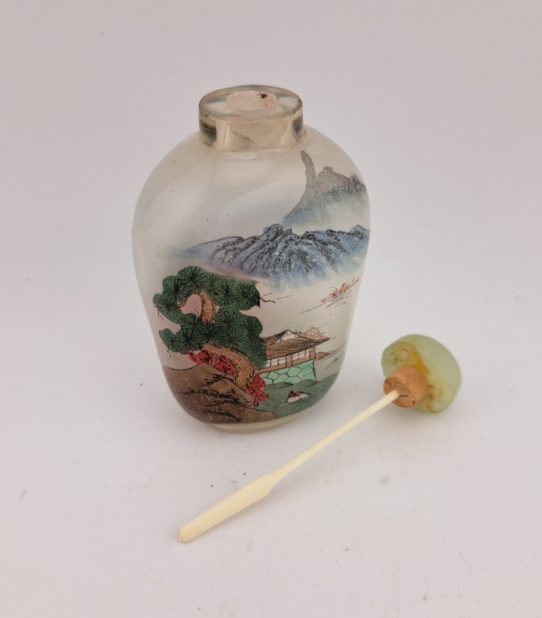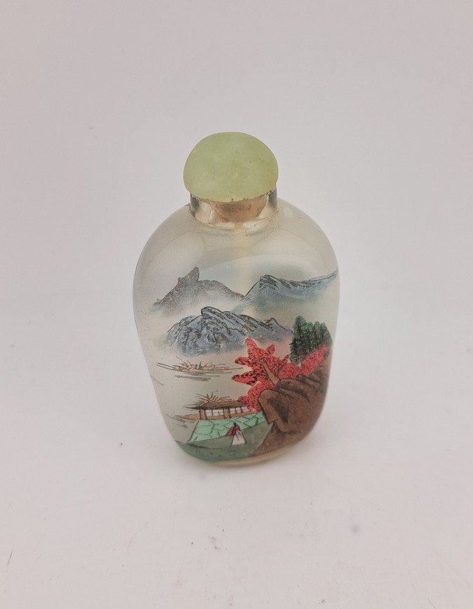 Parfumflesje, China, 20e eeuw. Aan de binnenzijde van het glas beschilderd.