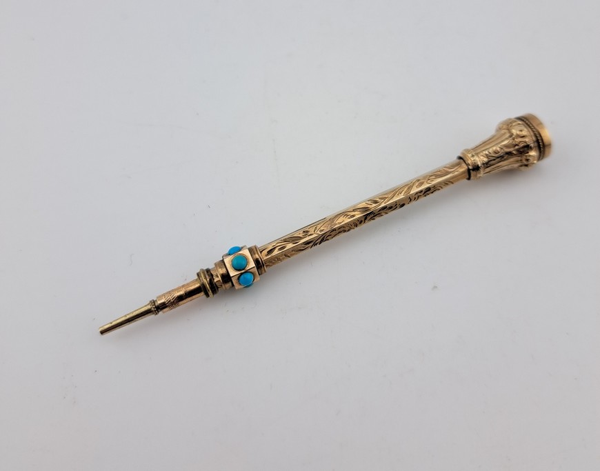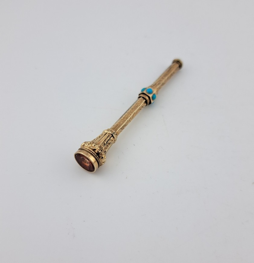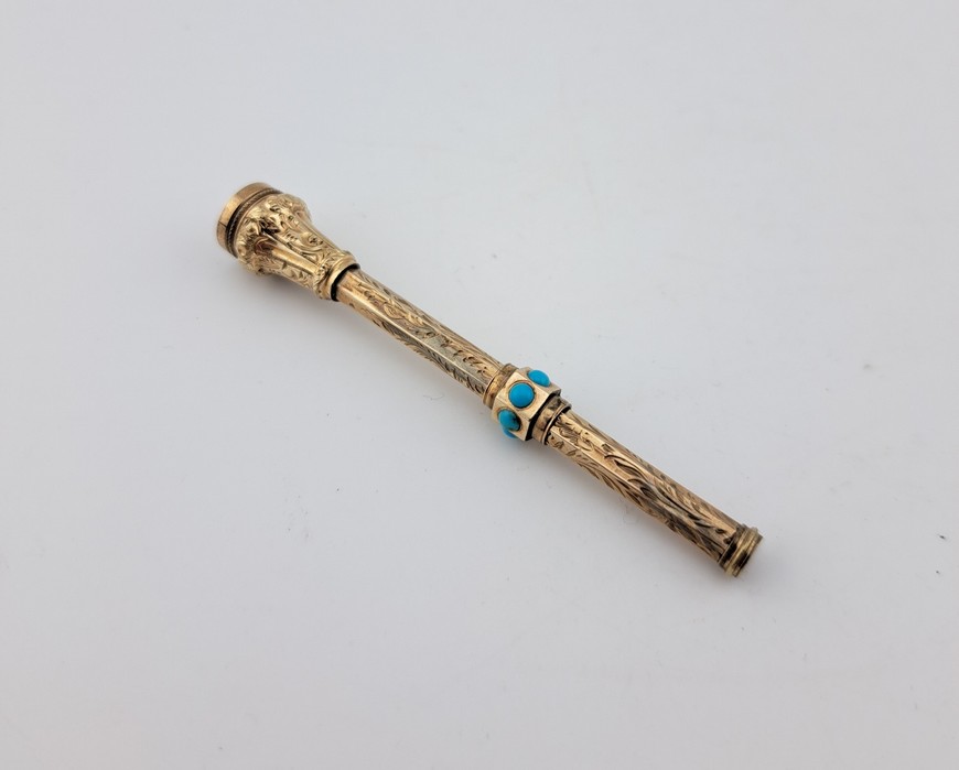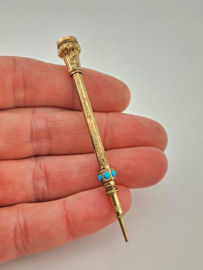 Antiek potloodje, 9k met turquoise, 19e eeuw.