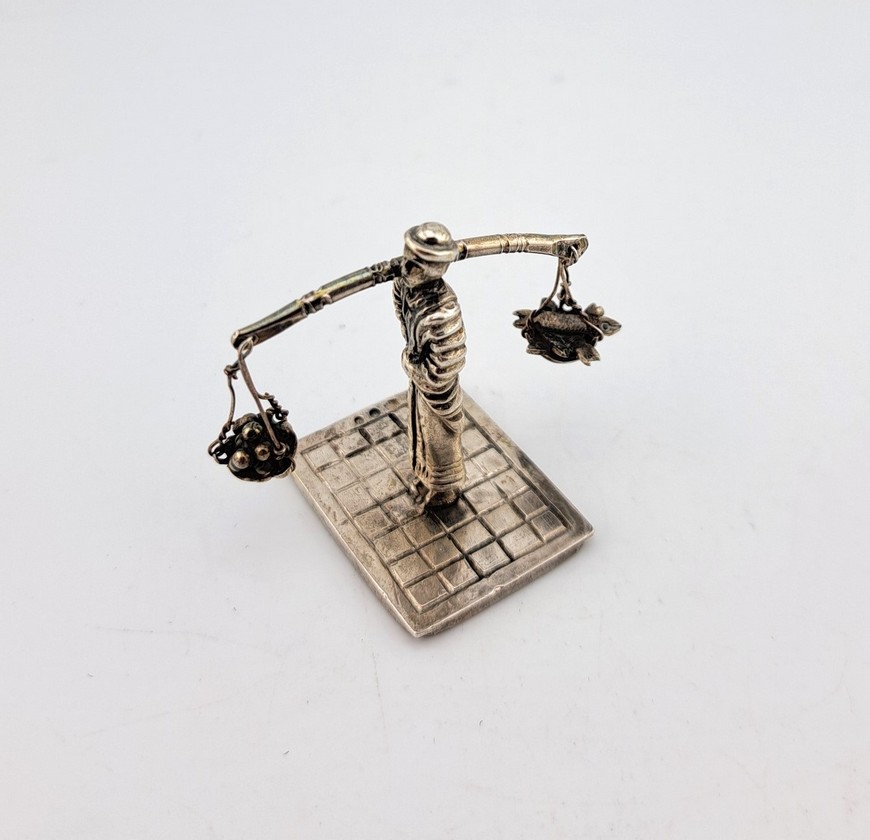 Miniatuur marktkoopman, zilver, C.A. Stout, Rotterdam, ca.1980.
