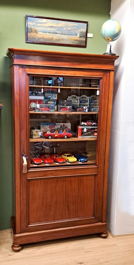 Antieke vitrinekast, 1-deurs, mahonie, Biedermeier – ca 1840