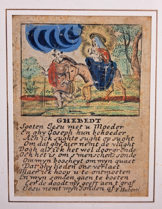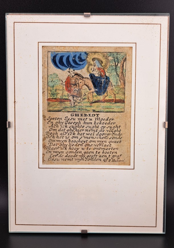 Antiek devotieprentje, F. Huberti, België, 1630-1687, Ingekleurde ets.