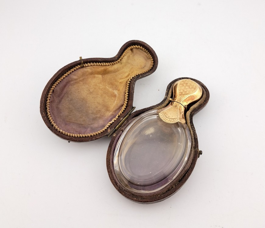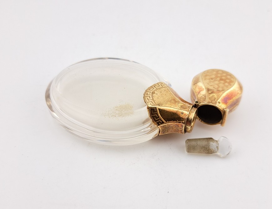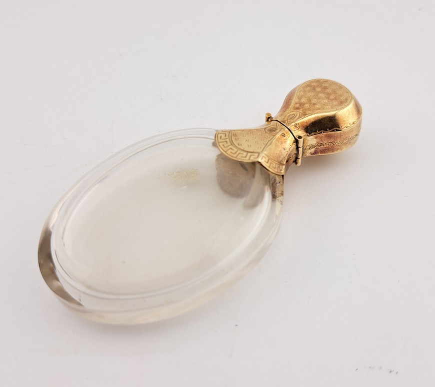 Antiek parfumflesje, kristal met 14k gouden dop, Hollands, ca.1830-1830.