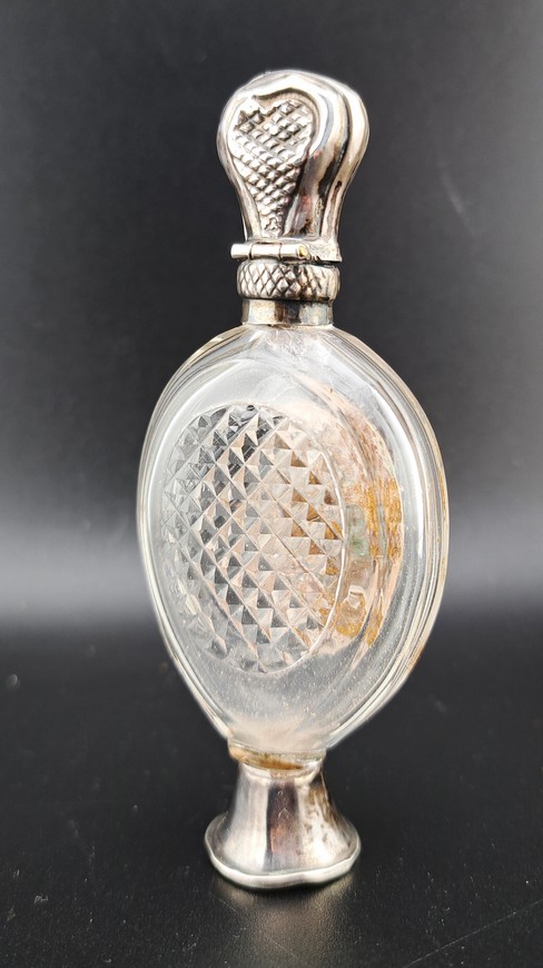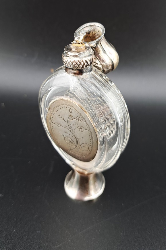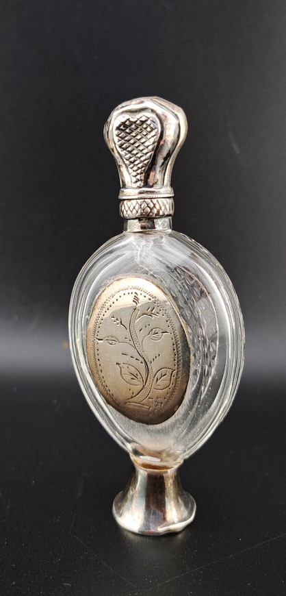 Antiek parfumflesje, kristal met zilver, Hollands, ca.1880-1900.