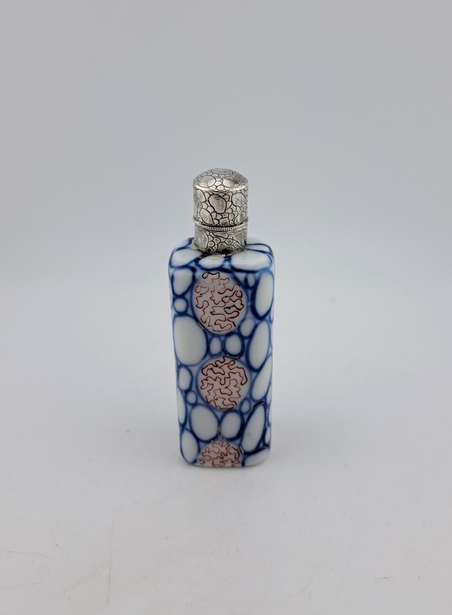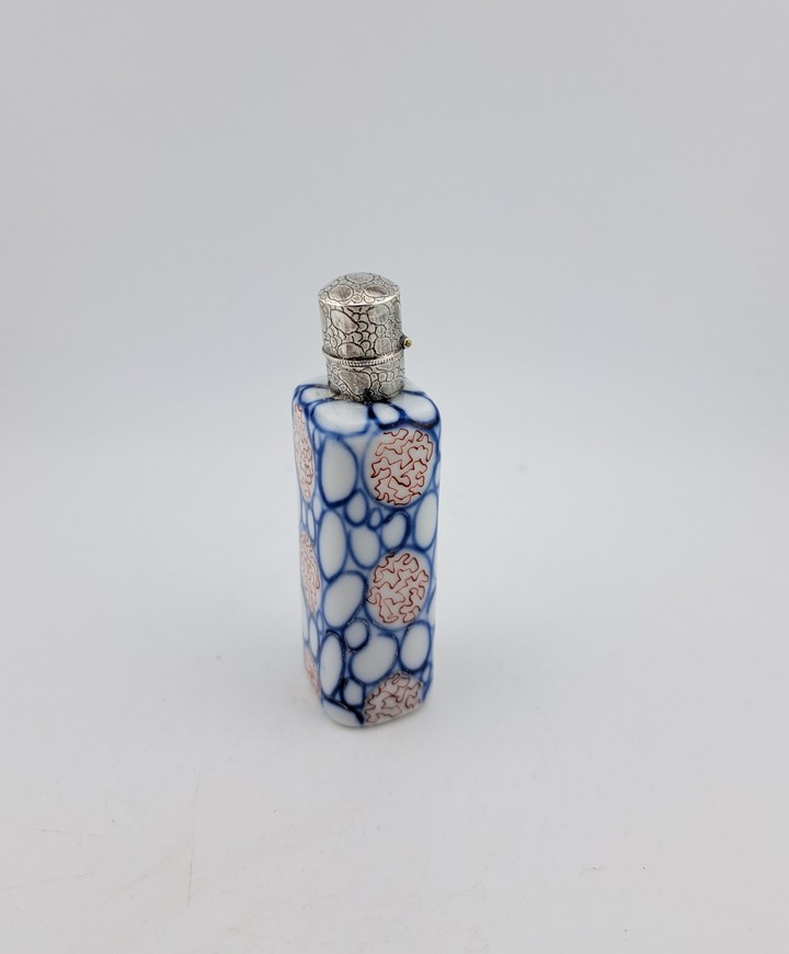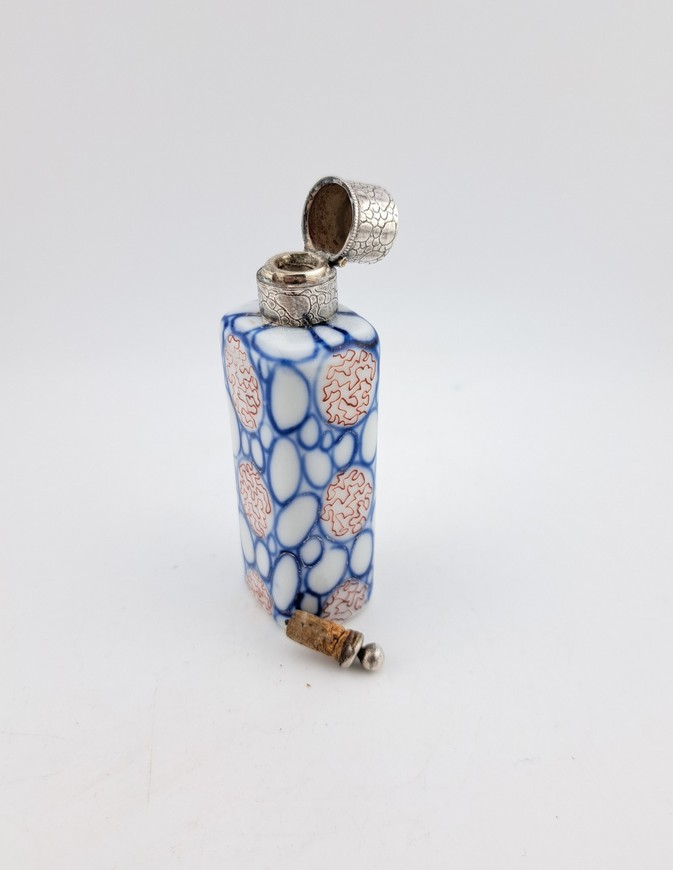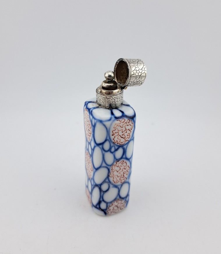 Antiek parfumflesje, porselein met zilveren dop, eind 19e eeuw.