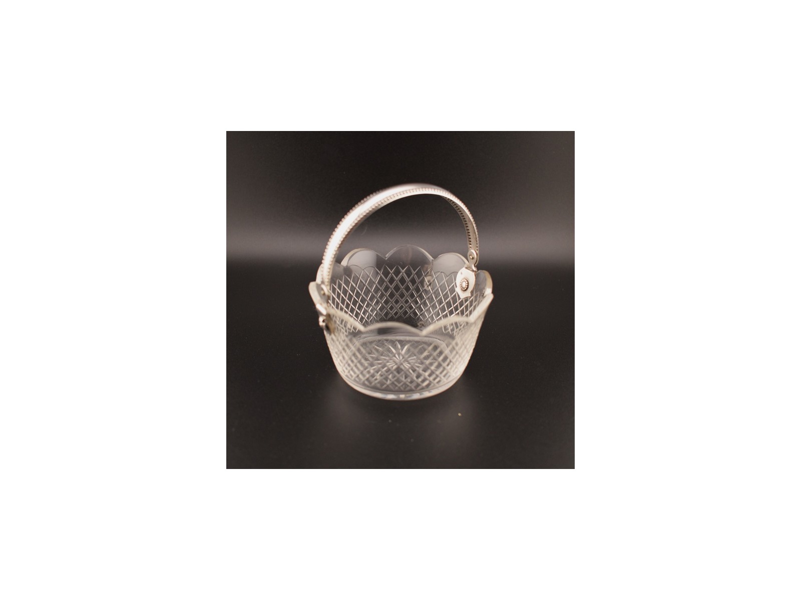 Antiek suikermandje, kristal en zilver, Hollands, jaar 1916 (HZG1356) – Het Wagenwiel Antiek (1a)