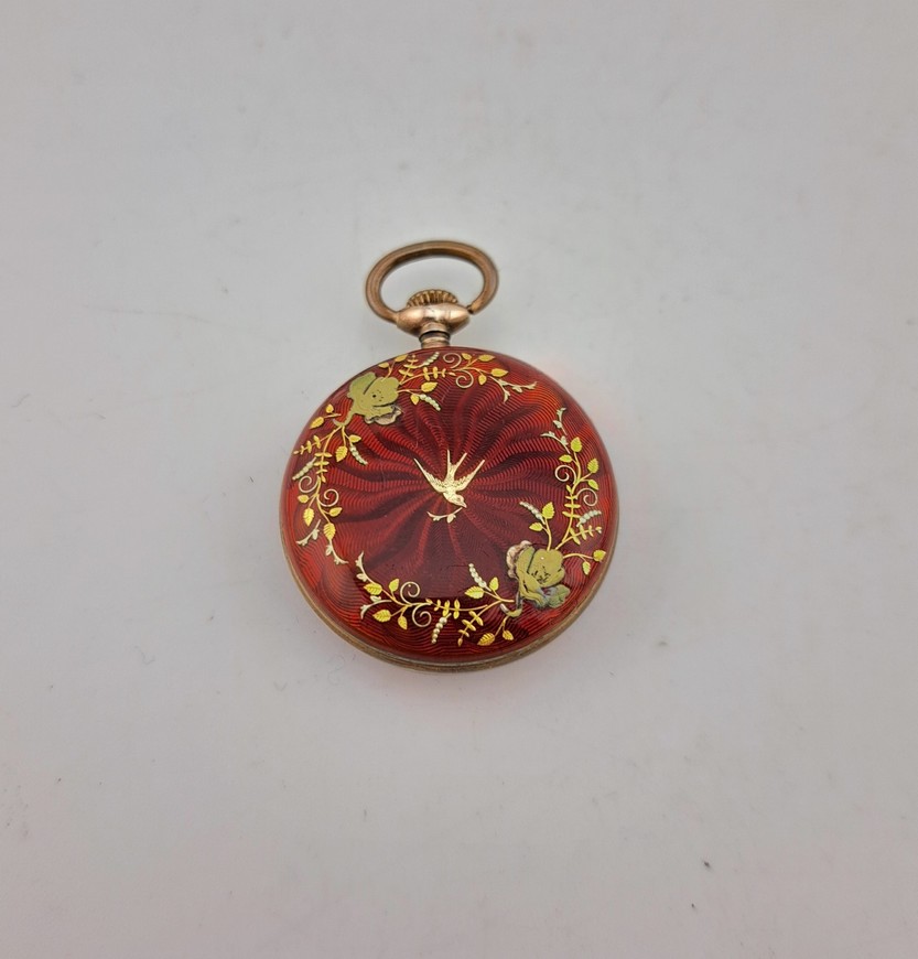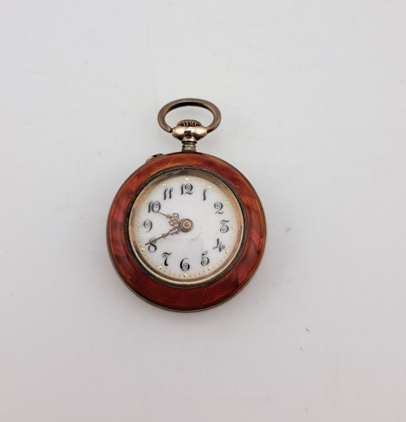 Antiek zakhorloge, zilver met emaille, ca.1900-1920.