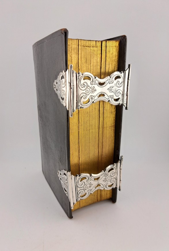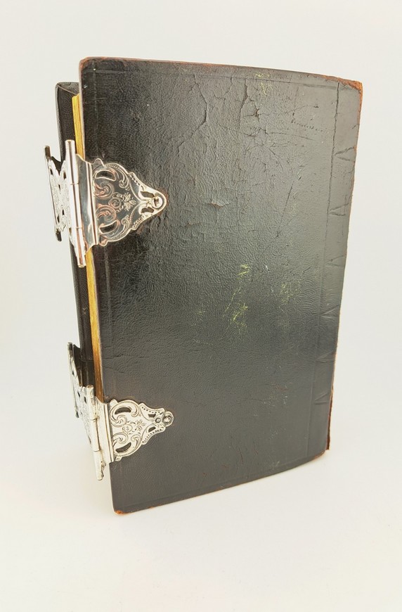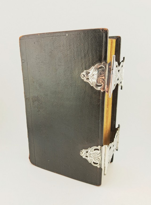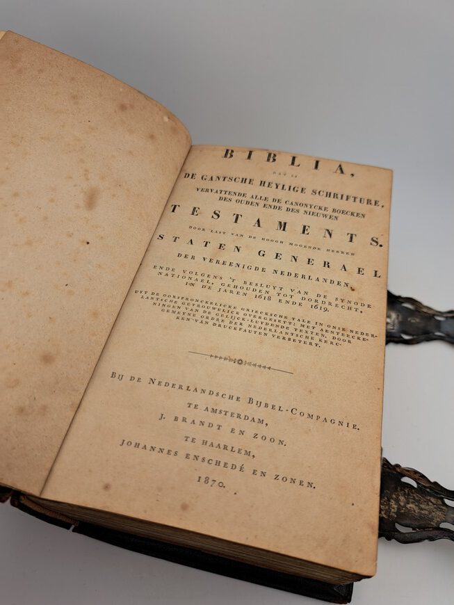 Antieke Bijbel met dubbele zilveren sloten, jaar 1872. De Bijbel bevat het oude en nieuwe testament. De Bijbel dateert van 1870.
