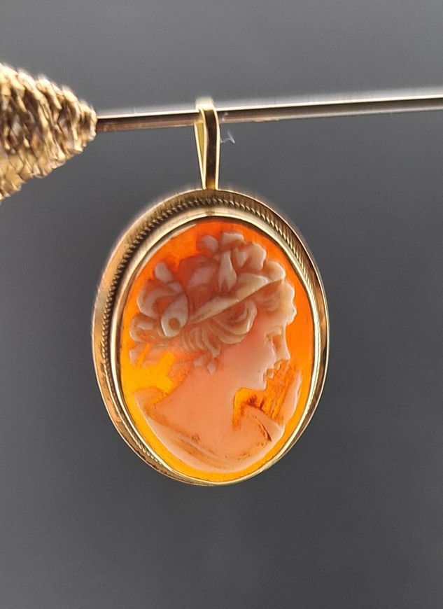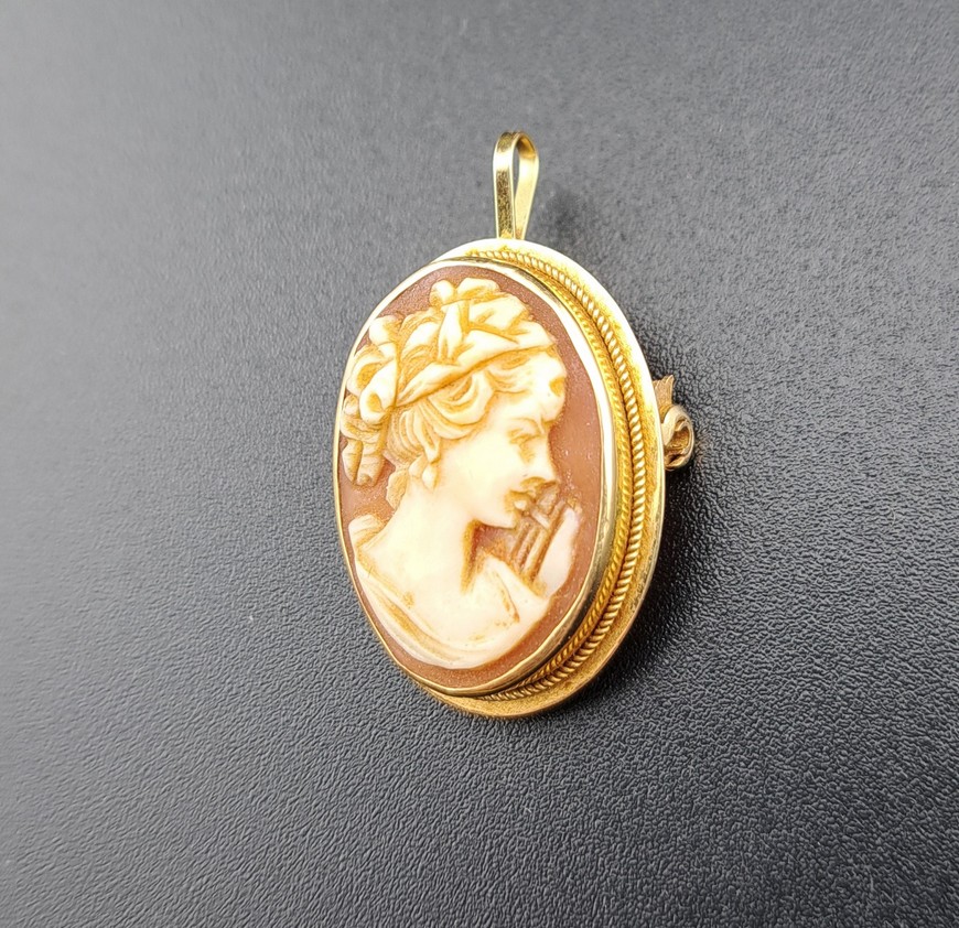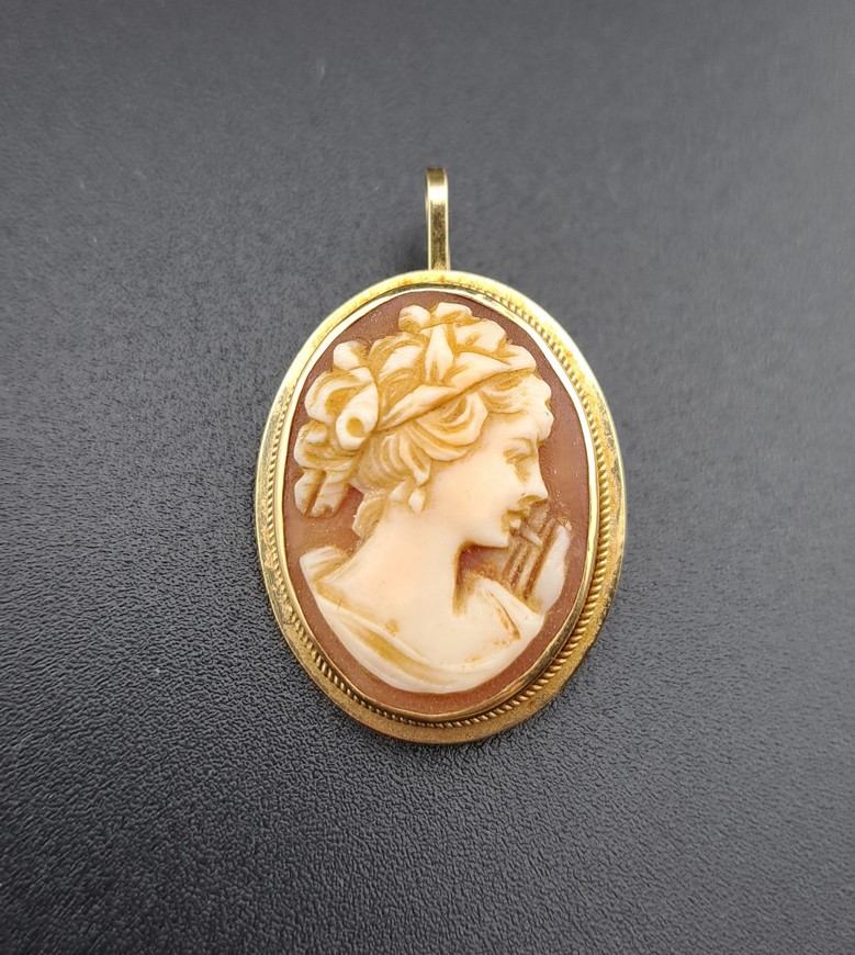 Antieke camée hanger / broche in 18k gouden setting, 19e eeuw.