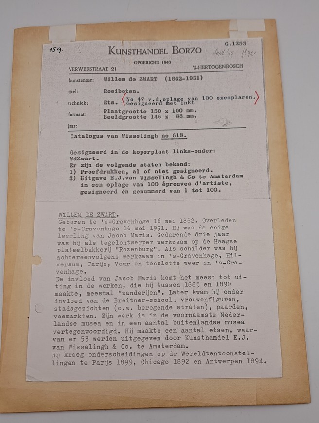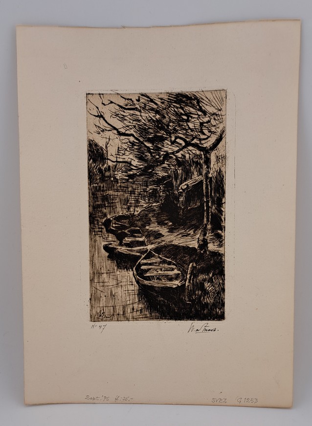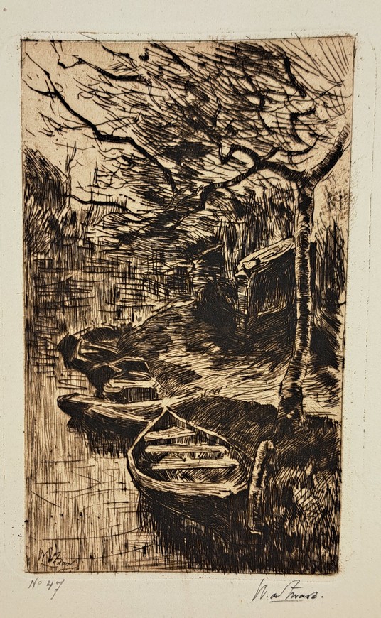 Antieke Ets (zonder lijst), Roeiboten, Willem de Zwart, 1862-1931. De est is genummerd No.47 van 100.