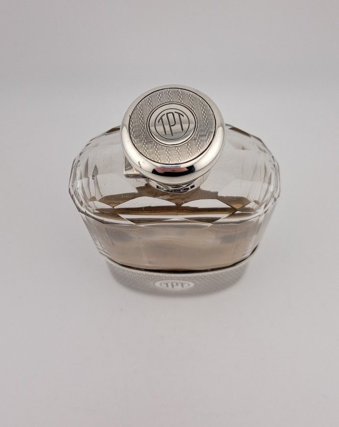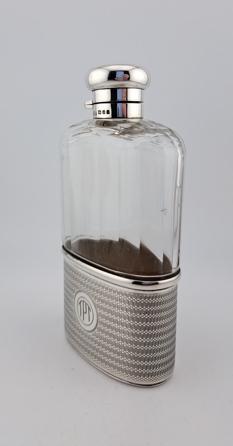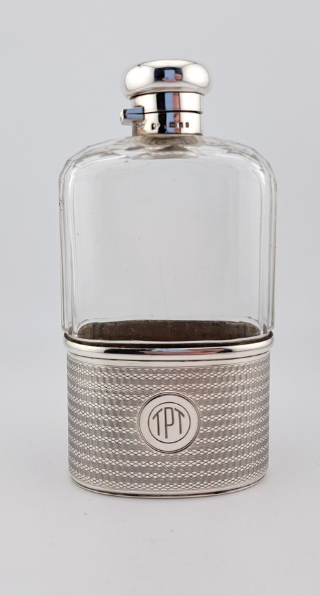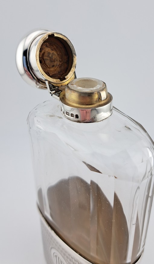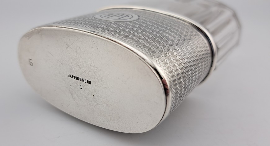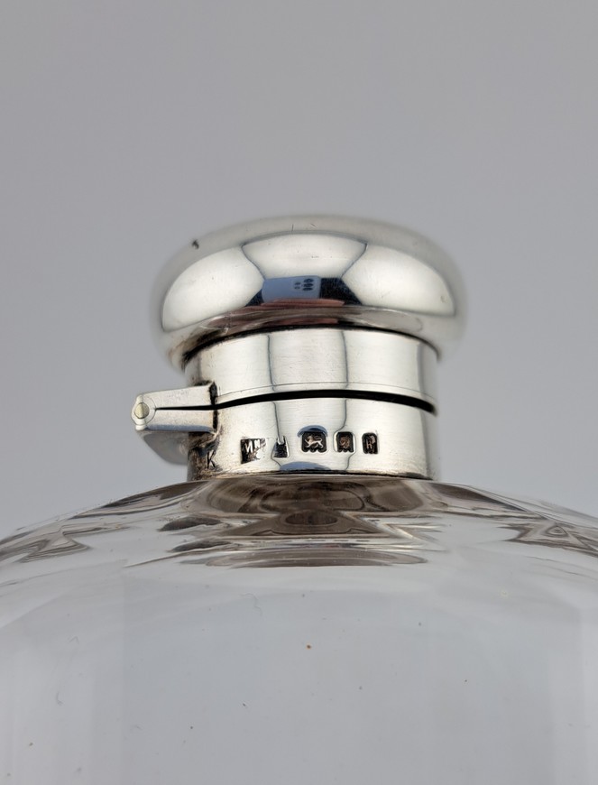 Antieke heupfles, zilver met kristal, Mappin & Webb, ca.1910.