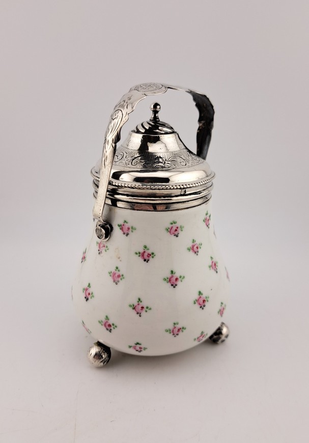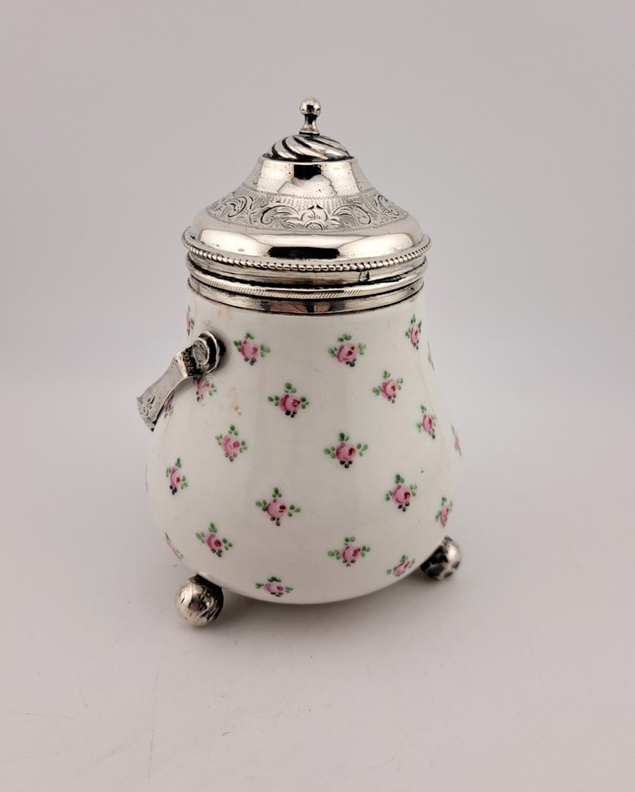 Antieke luciferdoos, porselein met zilver, eind 19e eeuw.