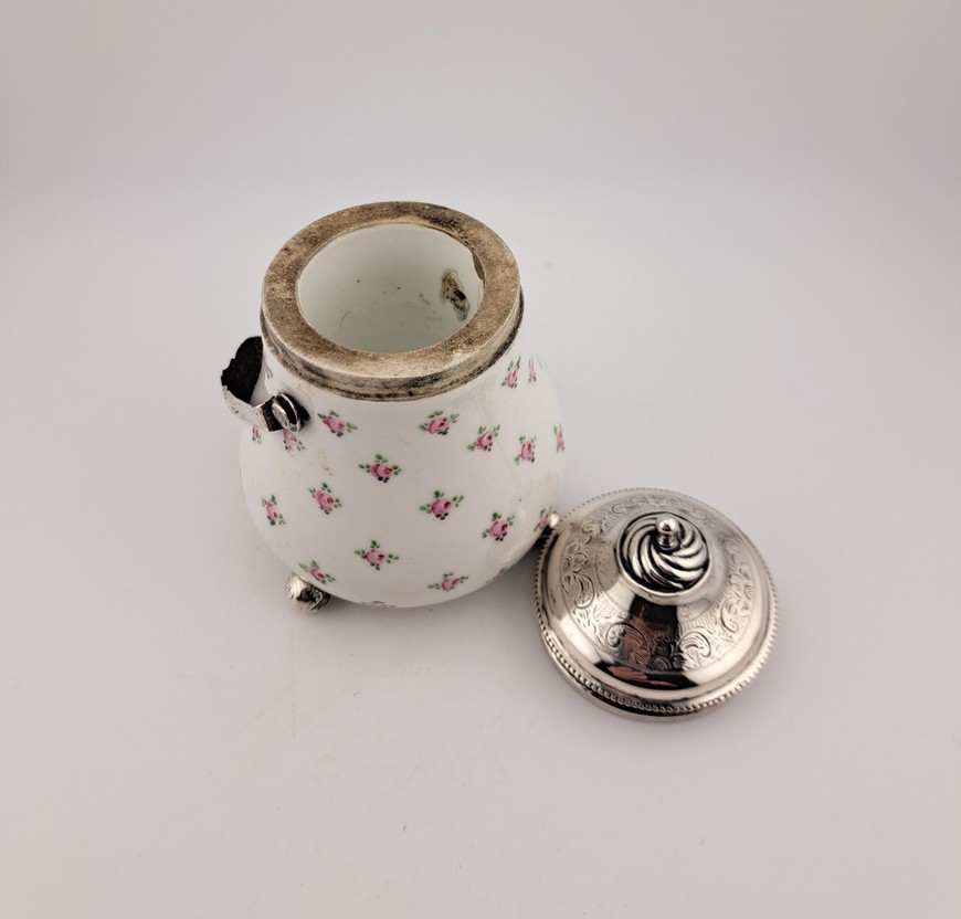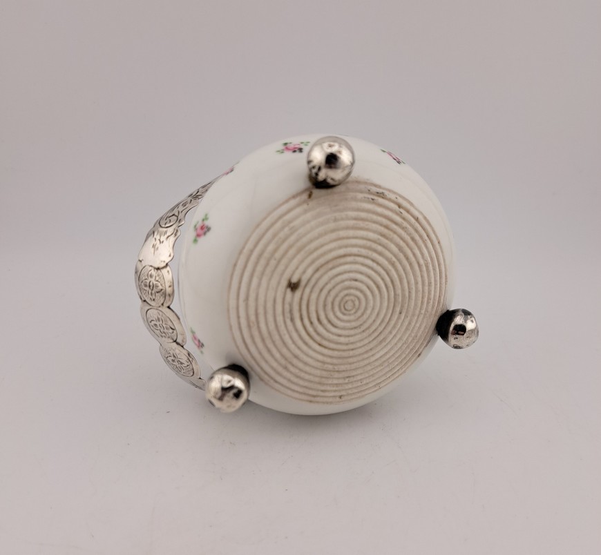 Antieke luciferdoos, porselein met zilver, eind 19e eeuw (HA871) - Het Wagenwiel Antiek (2a)