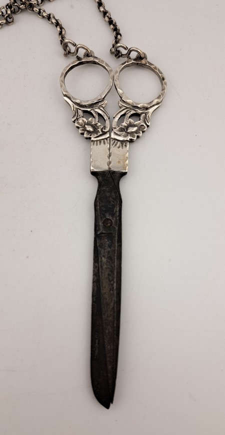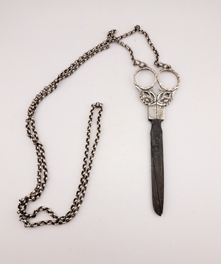 Antieke naaischaar met zilveren ketting, ca.1840.