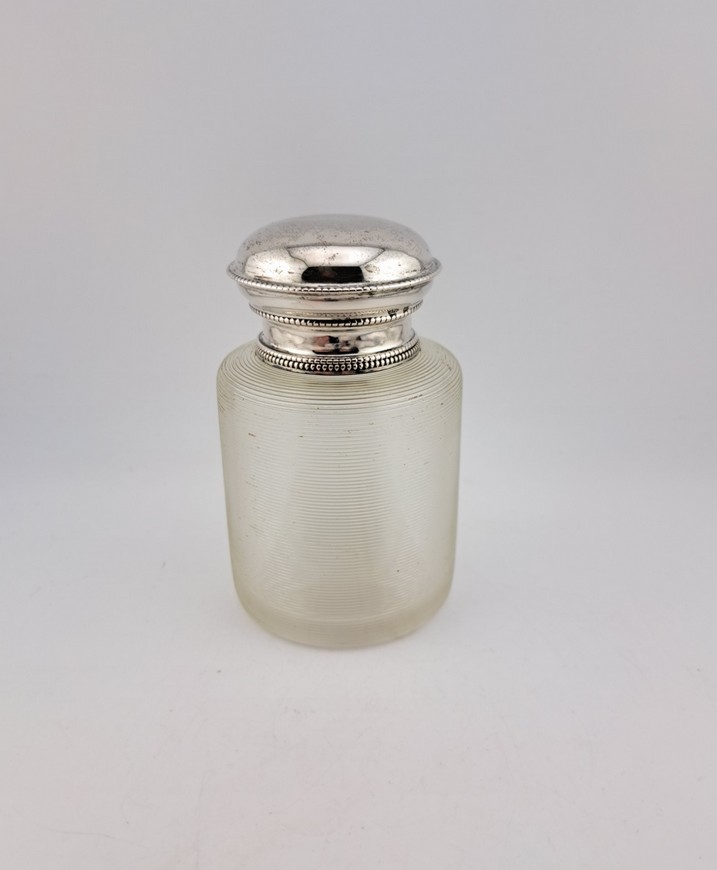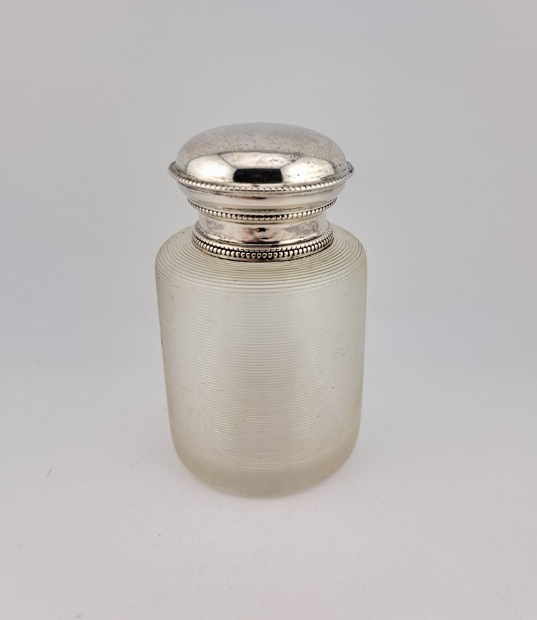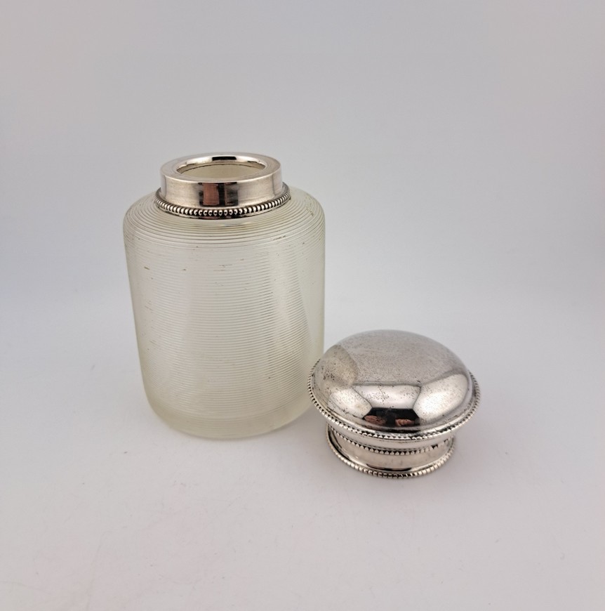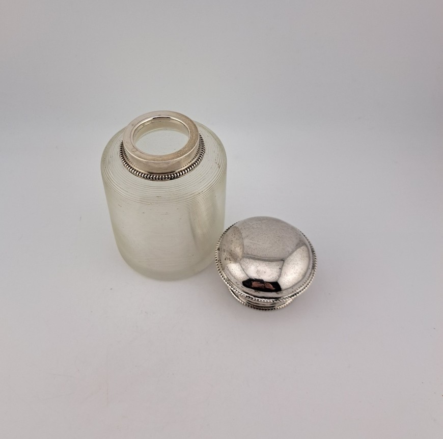 Antieke theebus, Fries draadglas met zilveren dop, mt; A. Fontani, Amsterdam, 1894-1921 (HGL481) - Het Wagenwiel Antiek (1a)