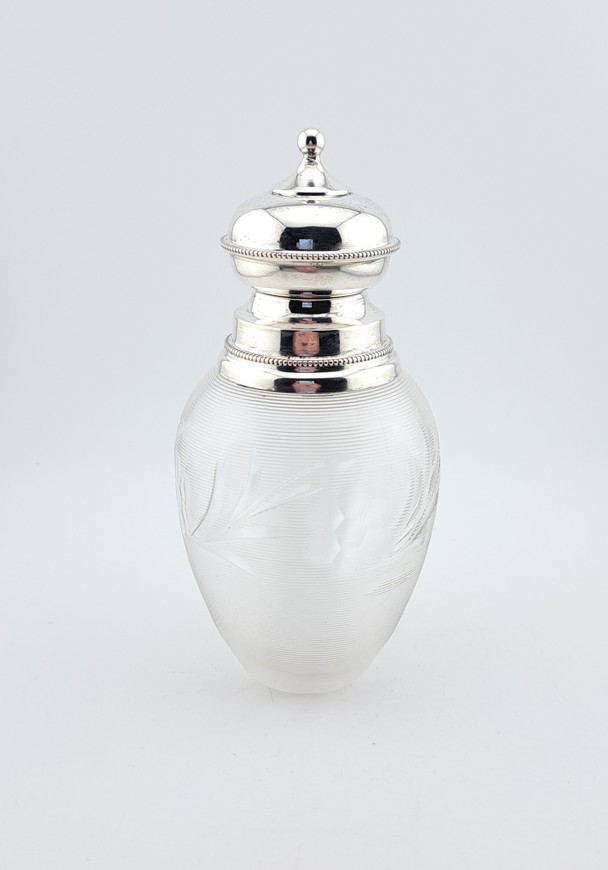 Antieke theebus, kristal met zilver, Fries draadglas, ca.1870-1900.