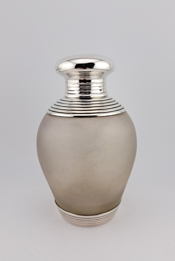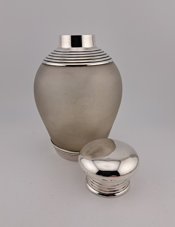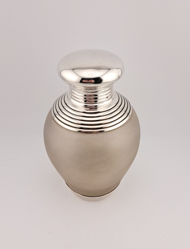 Antieke theebus, satijnglas met zilver, van Kempen, Schoonhoven, ca.1900.