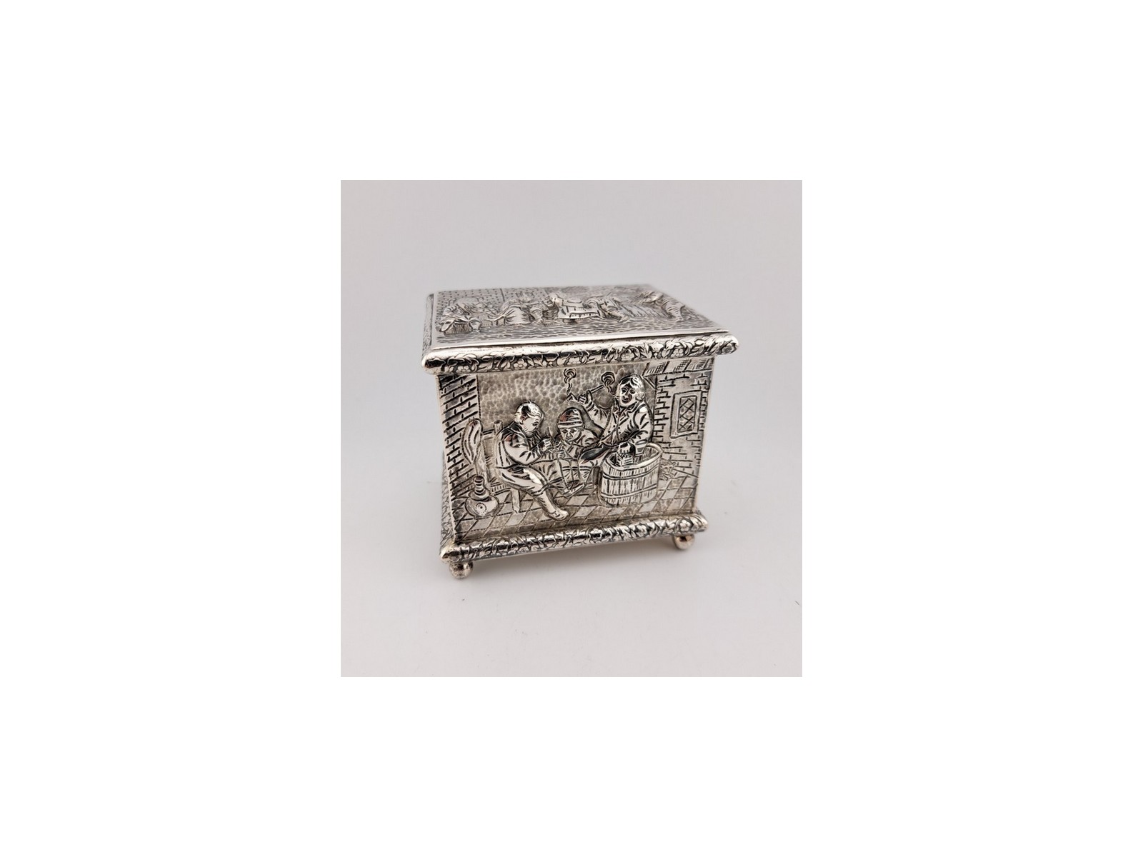 Antieke theedoos, zilver, Cornelis Rietveld, Schoonhoven, jaar 1911 (HZG1510) – Het Wagenwiel Antiek (1a)