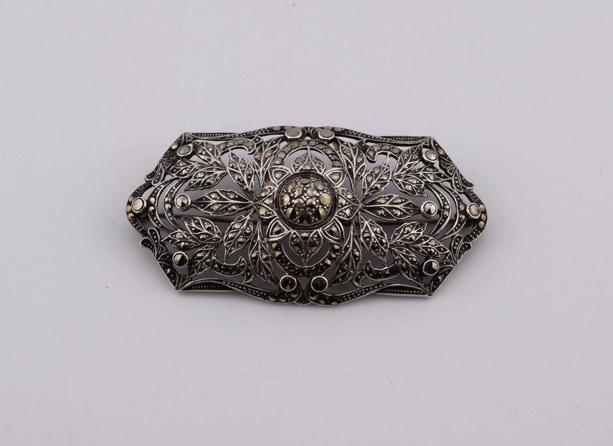 Broche, zilver met markesietjes, Art Deco (HS1173) – Het Wagenwiel Antiek (2)