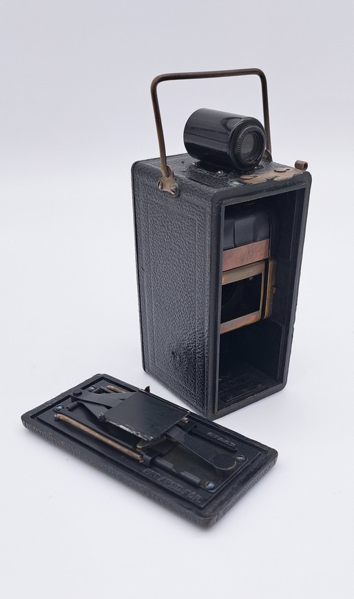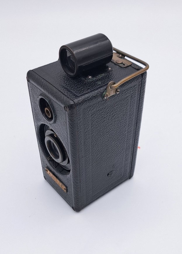 Antieke boxcamera, Ansco Memo, halframe, 35mm, jaar 1926.