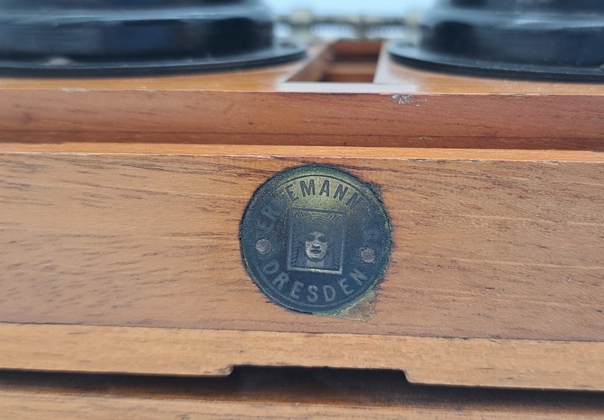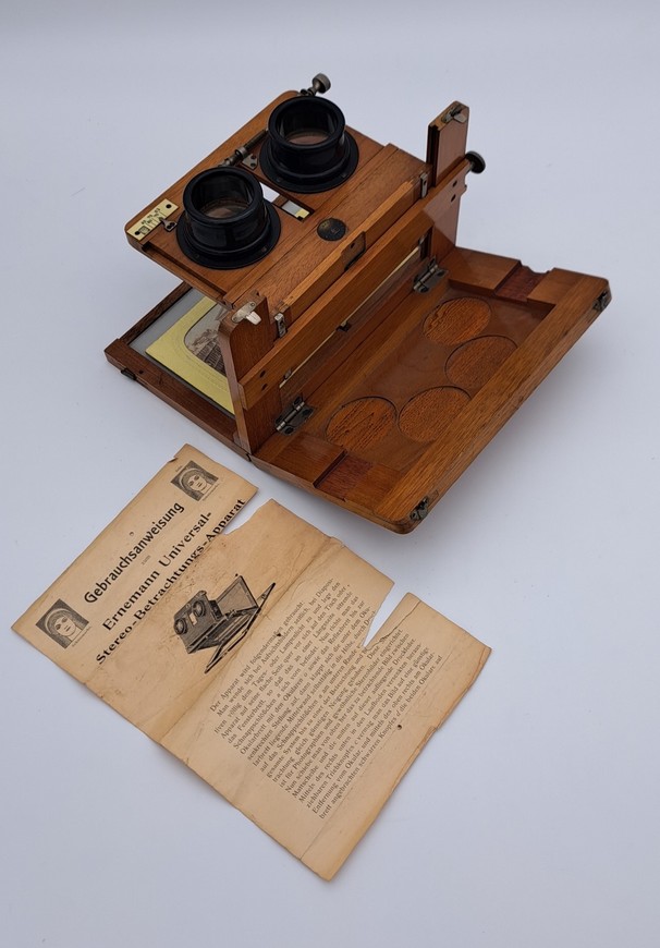 Antieke stereokijker, Ernemann universal, Duitsland, jaar 1915. Opvouwbaar. Inclusief originele gebruiksaanwijzing en 1 stereofoto.