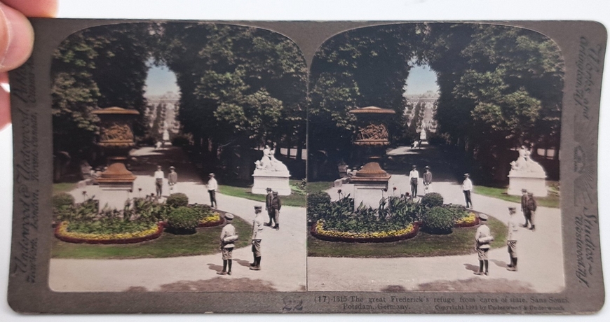Antieke stereofoto, met de hand ingekleurd, Underwood & Underwood, Potsdam Berlijn, ca 1903