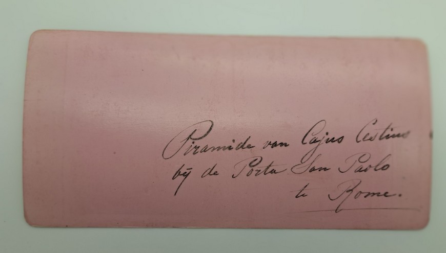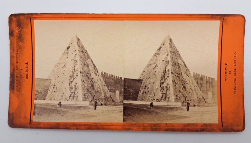 Antieke stereofoto, Piramide van Cajus Cestius te Rome, (HZS112)