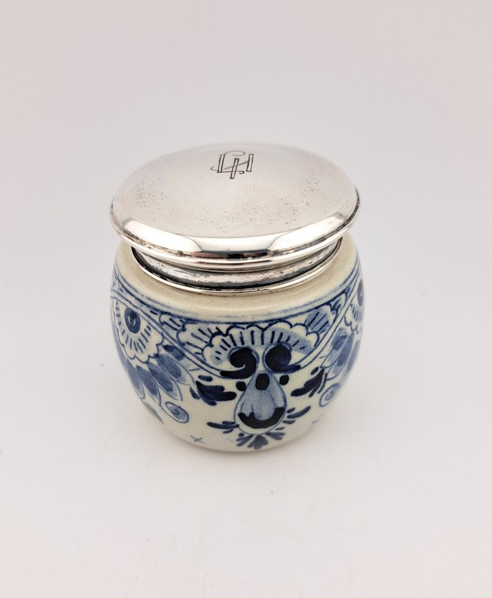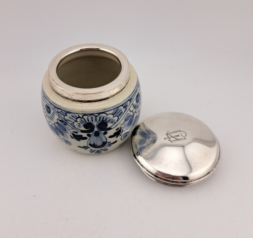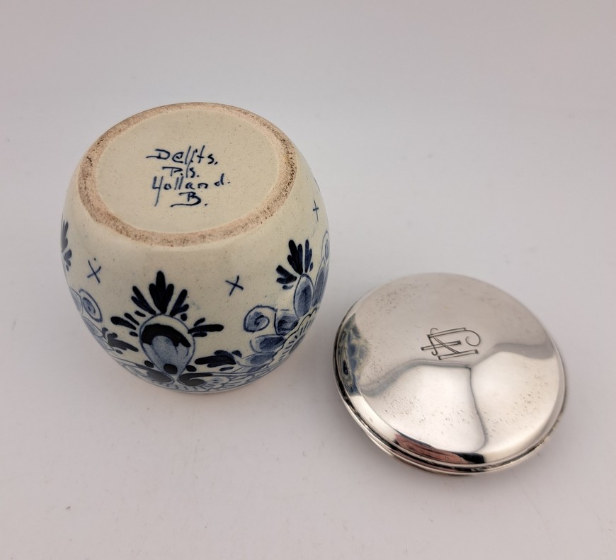 Dekselpotje, Delfts blauw met zilver, ca.1930.