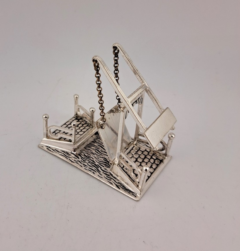 Miniatuur ophaalbrug, 2e gehalte zilver, Hollands, jaar 1976.