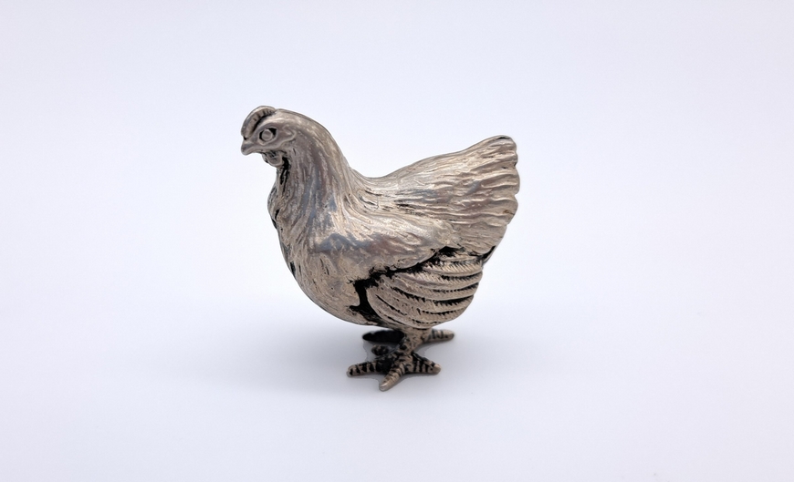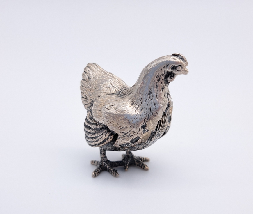Miniatuur zilver, kip, 2e gehalte, 20e eeuw