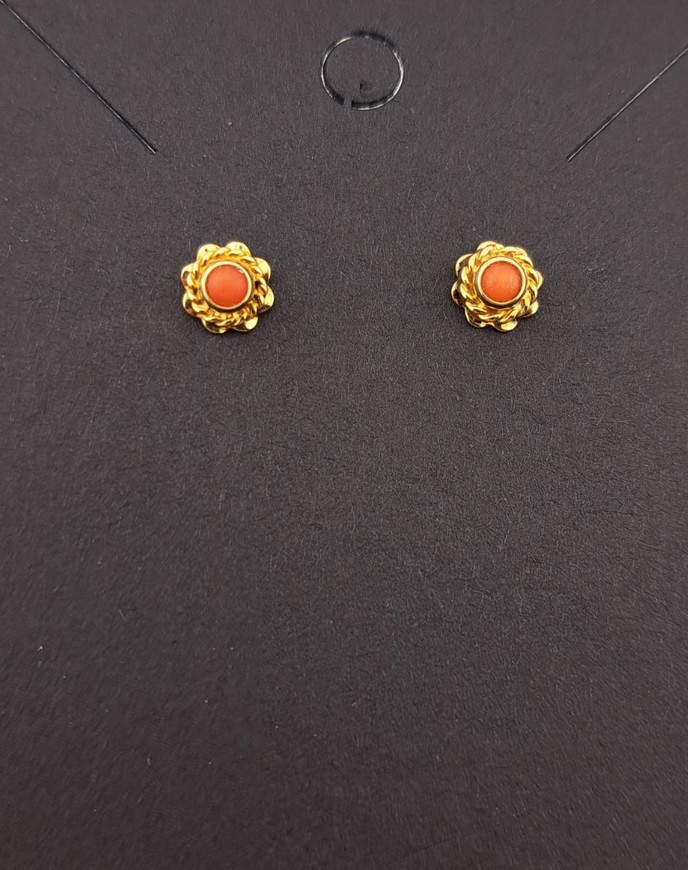 Oorstekers, 14k goud met bloedkoraal (HS1763.01) - Het Wagenwiel Antiek (1a)