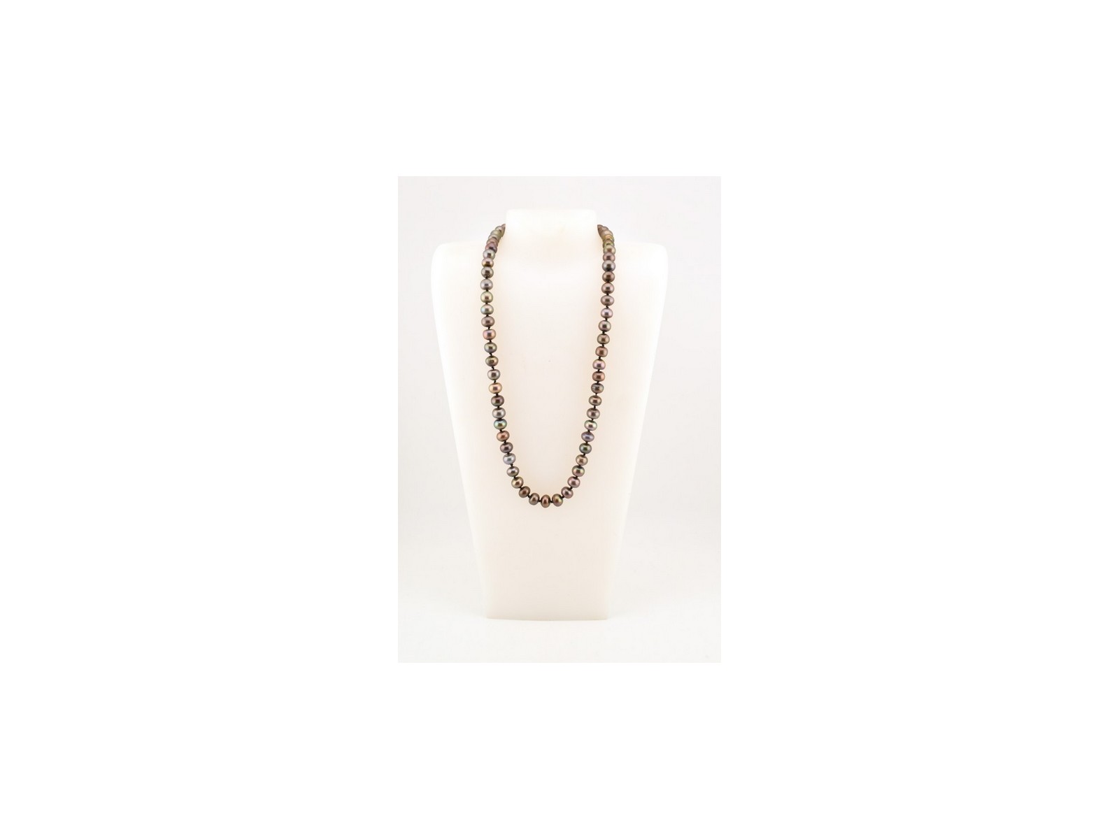 Parelketting met zilveren slot, Tahitiaanse parels (HZG970.04) – Het Wagenwiel Antiek (1a)