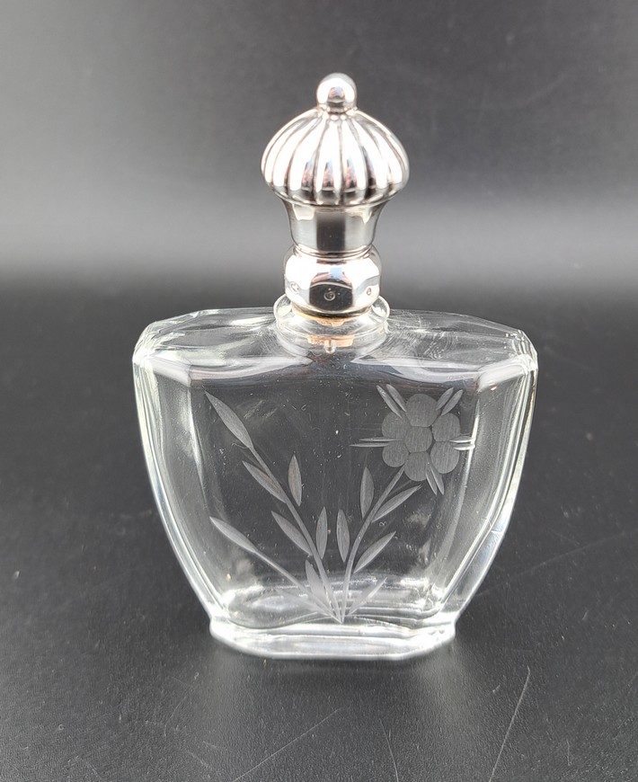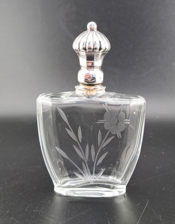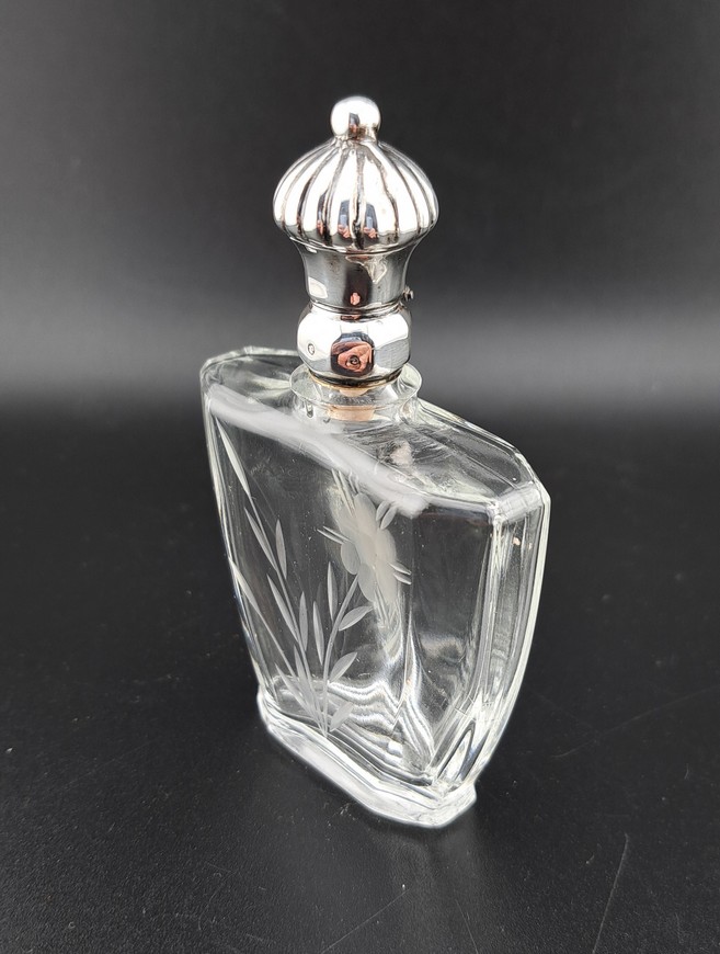 Parfumfles, zilver, ca.1960. Met een mooie bloem gravering in de fles
