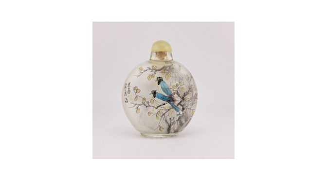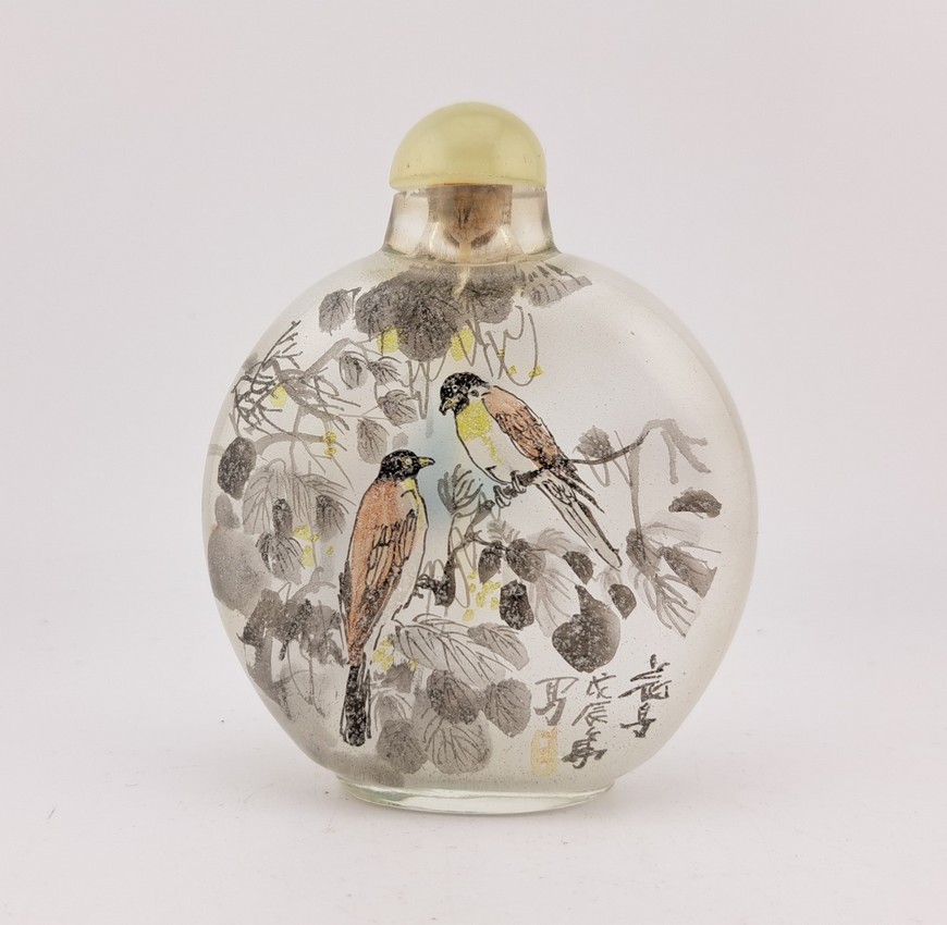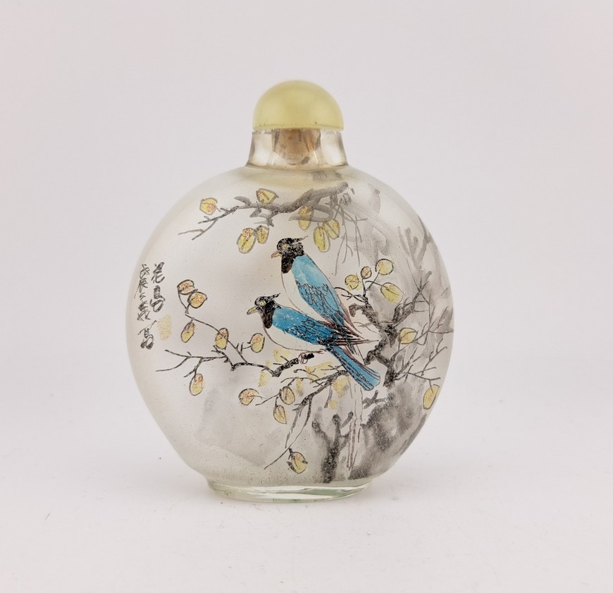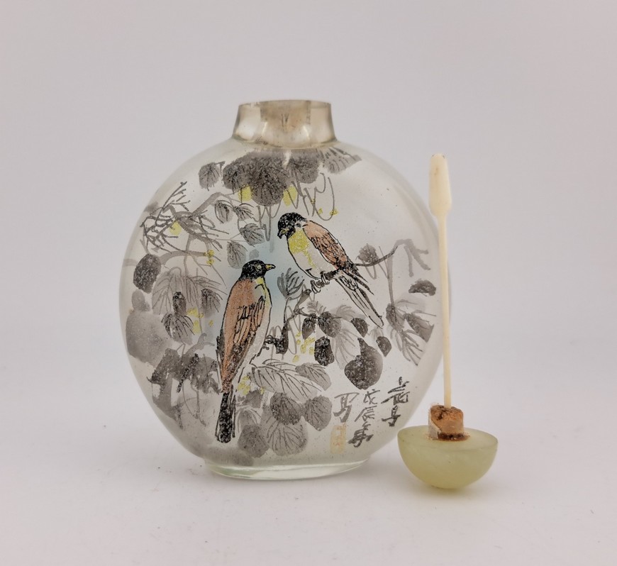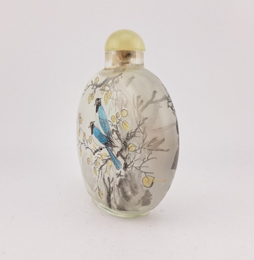 Parfumflesje, China, 20e eeuw. Aan de binnenzijde van het glas beschilderd.