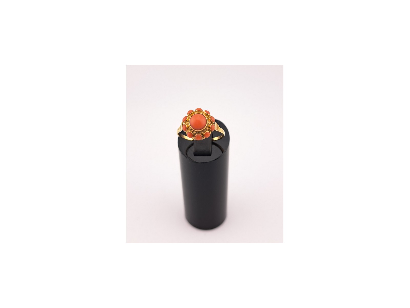 Ring, 14k goud met bloedkoraal, mt; Gebr. van Giel, Bergen op Zoom, ca.1970 (HS1443) – Het Wagenwiel Antiek (1a)