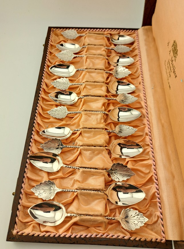 Set van 12 lepeltjes in foedraal, zilver, P. van Heumen, Schoonhoven, 1908-1943.